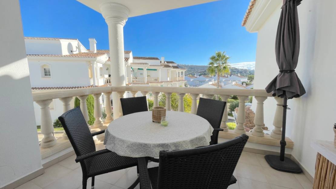 Dit goed onderhouden appartement op de bovenste verdieping biedt een ideale combinatie van comfort, privacy en het mediterrane leven. Gelegen in de geliefde residentie Las Fuentes, geniet de woning van een rustige ligging op loopafstand van lokale voorzieningen en op korte rijafstand van de mooie stranden van Moraira.
