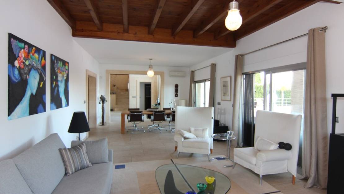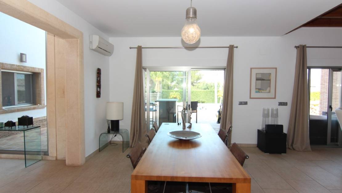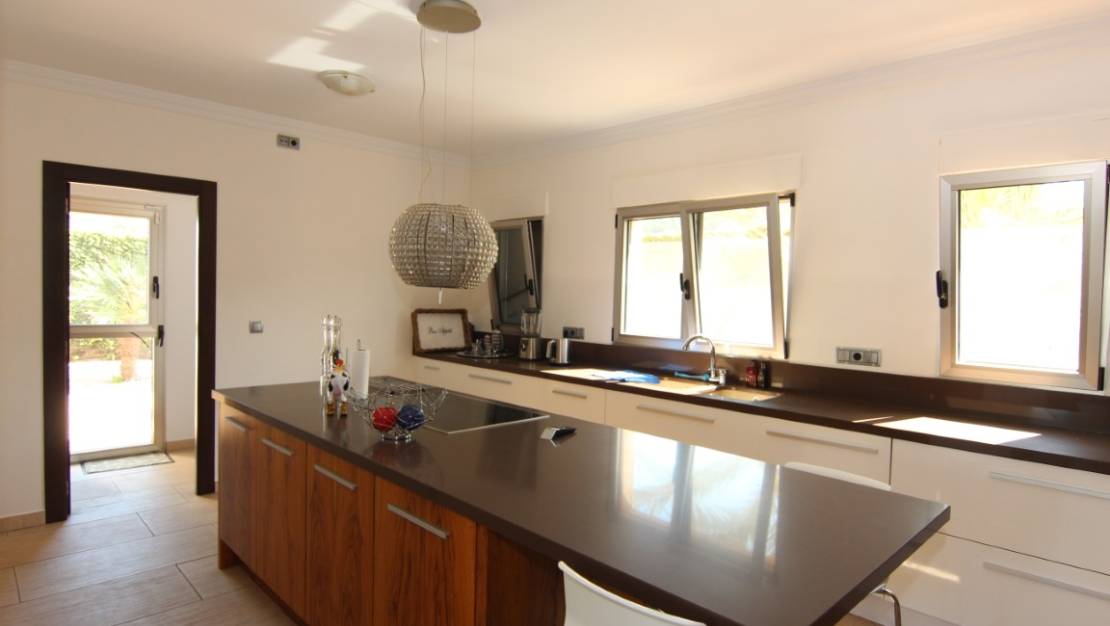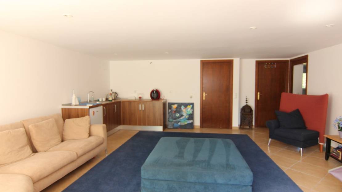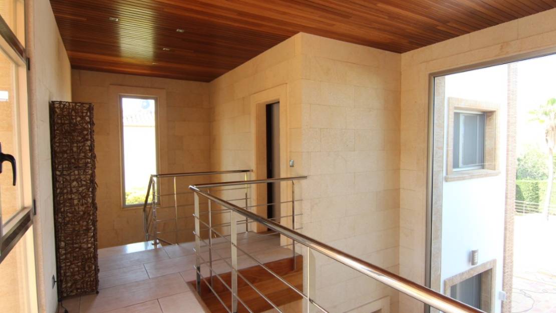 Villa te koop in Javea, gelegen op een rustige locatie kort bij de zee. De villa heeft een ruime inkomhal met dubbele hoogte, een grote woonkamer vanwaar men toegang heeft tot het overdekte terras en de tuin, een ruime keuken met een bijkeuken. Verder zijn er op het gelijkvloers 2 tweepersoons slaapkamers die beide een en suite badkamer hebben. Op de eerste verdieping bevind zich de master bedroom met en suite badkamer en dressing/gym. Buiten in de tuin is er een zwembad van 70m2, het heeft een aparte jacuzzi en een enorm terras. Daarnaast is er nog een tweede terras dat georienteerd is op het oosten waar men van de ochtendzon kan genieten. Verder is er nog een gastenappartement met een woonkamer met een open keuken, 2 tweepersoons slaapkamers en een familiebadkamer. Er is ook nog een garage van 60m2, een technisch lokaal en een oprijlaan waar 4 auto's kunnen staan. De woning is gebouwd met exclusieve duurzame bouwmaterialen.