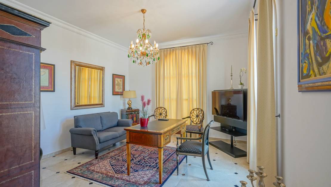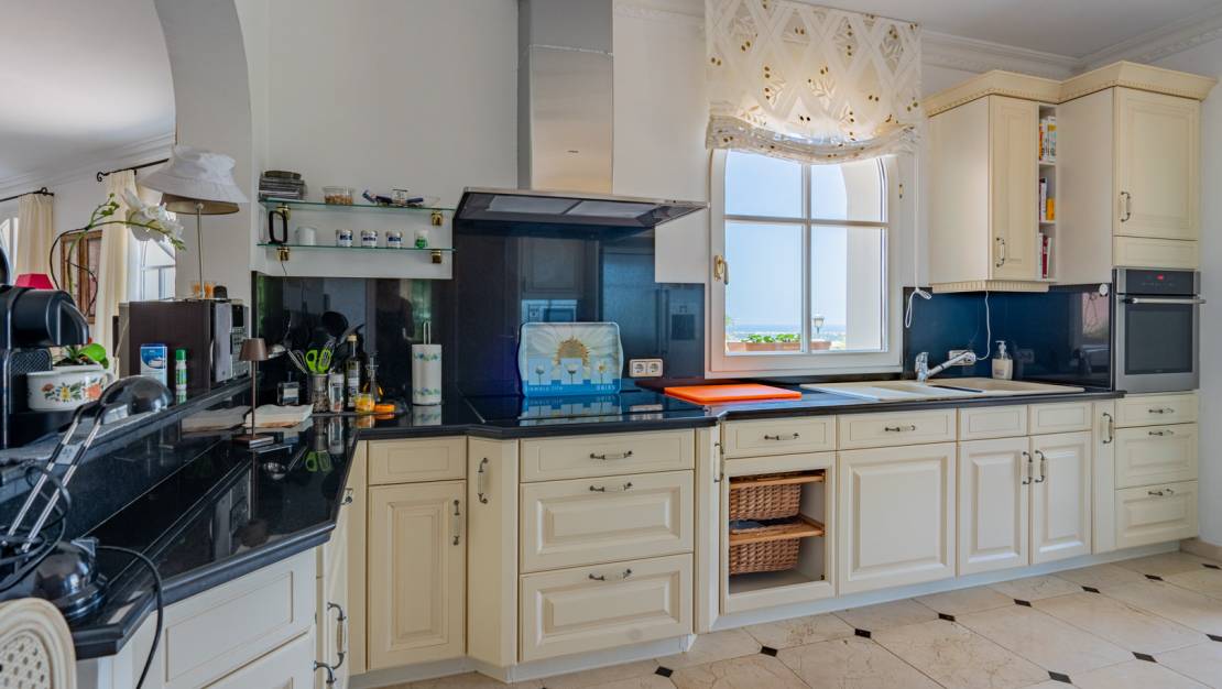 Ontdek dit prachtige luxe herenhuis in de prestigieuze urbanisatie La Sella, in een verhoogde positie met een ongeëvenaard panoramisch uitzicht. La Sella, gelegen in Pedreguer, is veel meer dan een urbanisatie: het is een oase van luxe en rust aan de Costa Blanca. Het ontwerp van de villa is verdeeld over twee verdiepingen, met een extra grote kelderruimte die kan worden aangepast aan jouw voorkeuren. Bij binnenkomst word je begroet door een ruime hal die leidt naar een elegante woon-eetkamer met open haard, een aparte eetkamer, een extra woonkamer en een volledig uitgeruste keuken. Op deze verdieping vind je ook een tweepersoonsslaapkamer met eigen badkamer en twee ruime bergruimtes. Een majestueuze trap vanuit de woonkamer brengt je naar de eerste verdieping, waar een tweepersoonsslaapkamer met eigen badkamer, twee slaapkamers verbonden door een Jack en Jill badkamer en nog een aparte slaapkamer op je wachten. Vanaf deze verdieping heb je toegang tot een groot terras met adembenemend uitzicht op de zee en de omringende vallei. Buiten wordt de villa omringd door een prachtig terras met weelderige tuinen. Aan de oostkant van het pand vind je een royaal zwembad, een verfrissende buitendouche en een buitenkeuken om buiten te eten. Daarnaast is er een ruime oprit met ruimte voor meerdere voertuigen en een garage. Deze woning is voorzien van alle moderne gemakken, zoals vloerverwarming, airconditioning en ramen met uitstekende isolatie. Bovendien heeft het zowel binnen als buiten een Bose luidsprekersysteem en zijn alle hoogwaardige materialen en afwerkingen van Duitse makelij. Beveiliging is een prioriteit in La Sella, met 24/7 bewaking gedurende het hele jaar, zodat bewoners te allen tijde gemoedsrust en privacy hebben. De urbanisatie La Sella onderscheidt zich door de bevoorrechte natuurlijke omgeving, omringd door bergen en met adembenemend uitzicht op de Middellandse Zee en de omliggende vallei. Naast de natuurlijke schoonheid biedt het een breed scala aan exclusieve diensten voor de bewoners, waaronder golfbanen van wereldklasse, tennisbanen, een manege en wandel- en fietspaden. La Sella is strategisch gelegen, op slechts een klein eindje rijden van de charmante kustplaatsen Denia en Jávea, beroemd om hun gouden zandstranden, voortreffelijke gastronomie en bruisende nachtleven. Bovendien biedt de nabijheid van de belangrijkste snelwegen gemakkelijke toegang tot de internationale luchthavens van Alicante en Valencia. Wonen in La Sella staat synoniem voor luxe, comfort en levenskwaliteit en biedt een exclusieve levensstijl in een idyllische omgeving aan de Costa Blanca. Deze woning is een echt juweeltje dat niemand onverschillig zal laten en biedt eindeloze mogelijkheden om het aan te passen aan je smaak en voorkeuren. Mis de kans niet om van dit huis je droomhuis te maken, deel uit te maken van deze bevoorrechte gemeenschap en van dit prachtige object je thuis te maken.