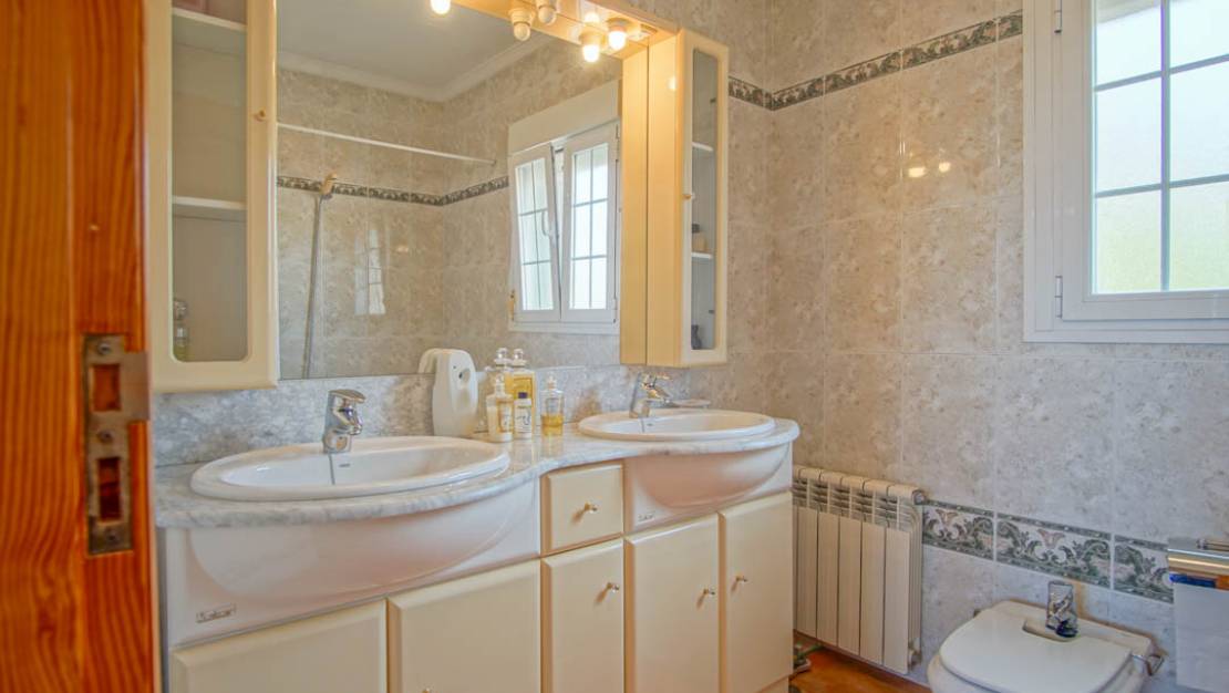 Deze statische, authentieke villa ligt op loopafstand van het strand en in de nabijheid van supermarkten, restaurants en terrasjes. De Villa is zeer degelijk gebouwd met hoge kwaliteit materialen die er na 21 jaar nog als nieuw uitzien. Alle deuren, maatkasten en keukenkasten zijn uit massief hout vervaardigd en zeer goed onderhouden. De buitenmuren zijn 40cm dik en geïnjecteerd met isolatiemateriaal. Het dak heeft ook een 12cm dikke isolatielaag. In de zomer is het koel binnen en in de winter hoeft met niet te veel te verwarmen. Er is ook een extra watertank van 8000L met pomp en functioneert als noodoplossing bij water tekort. De villa bestaat uit 3 verdiepingen. Op het gelijkvloers is er een garage voor 2 a 3 auto's, een berging, een wasplaats, een badkamer en een slaapkamer. Hier kan gemakkelijk een apart gastenverblijf van gemaakt worden indien nodig. Op eerste verdieping is er een inkomhal met een buitentrap naar de straat, een badkamer, een kantoorruimte/slaapkamer, een leefruimte en een aparte keuken met zithoek en een berging. Ook de keuken ziet er nog als nieuw uit door zijn hoge kwaliteit. Via de binnentrap komt men op de tweede verdieping, daar zijn er 3 slaapkamers met grote degelijke maatkasten en 1 badkamer met ligbad. Buiten naast het zwembad is er een houtoven en een gesloten buitenkeuken met al zijn toestellen. Aan de voorkant van de villa is er parkeerplaats voor een 4tal autos. De tuinmuren bij het zwembad hebben wat opfrissing nodig maar verder is de villa in TOP conditie!
