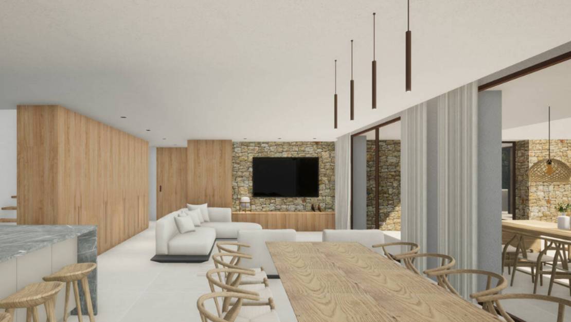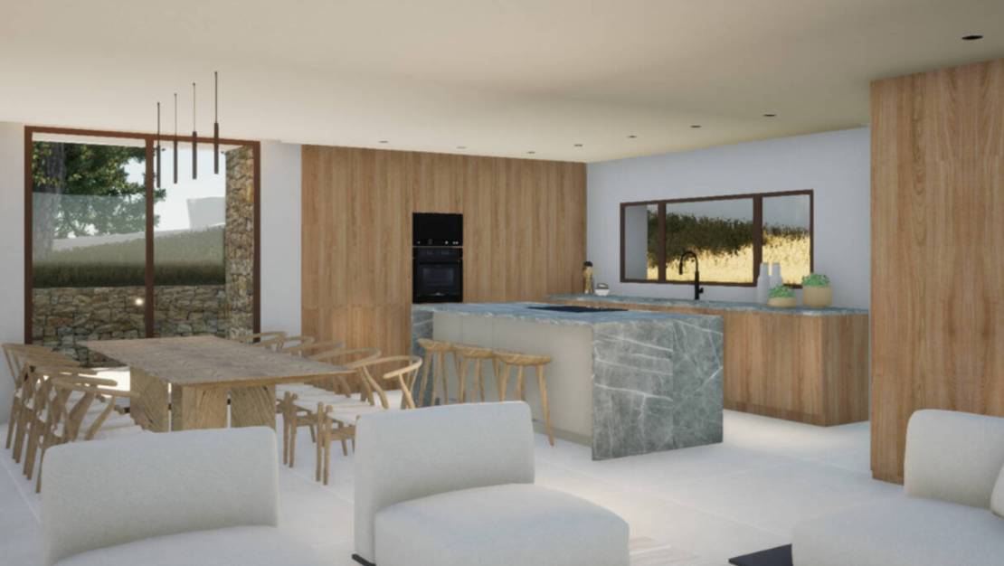 Ontdek luxe en elegantie in deze prachtige moderne villa in Moraira. Met een indeling over drie verdiepingen biedt deze luxe woning een uitzonderlijke ruimte om te wonen en te genieten. Met vier slaapkamers, vier badkamers en twee toiletten is elk detail zorgvuldig ontworpen voor comfort en stijl. De kelder is een waar entertainmentparadijs, met een garage die aansluit op een multifunctionele ruimte, ideaal voor familiebijeenkomsten of feestjes met vrienden. Daarnaast vind je er een bioscoopzaal om van je favoriete films te genieten, een volledig uitgeruste fitnessruimte en een grote wasruimte. Bij binnenkomst op de begane grond word je begroet door een elegante hal die leidt naar een ruime gang. Hier vind je twee slaapkamers, elk met een eigen en-suite badkamer en kleedkamer, perfect om privacy te bieden aan je gasten. De indrukwekkende open woonkamer heeft een open keuken die uitkomt op de lichte woon-eetkamer, met een aparte bijkeuken. Vanaf hier heb je toegang tot een groot terras met veranda, waar je kunt genieten van het overloopzwembad en de weelderige privétuin. De eerste verdieping biedt twee extra slaapkamers, elk met een eigen badkamer en toegang tot een groot terras met panoramisch uitzicht. Verder vind je hier een extra ruimte die kan worden gebruikt als kantoor of woonkamer. Gelegen op een bevoorrechte locatie dicht bij de kust, op slechts 1,2 km van het pittoreske Portet strand en op 1 km van het winkelgebied en het centrum van Moraira, biedt deze villa het beste van de mediterrane levensstijl. Mis de kans niet om in dit kustparadijs te wonen, neem vandaag nog contact met ons op voor meer informatie!