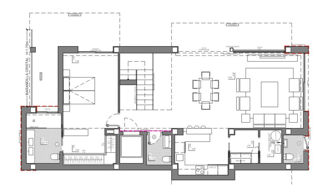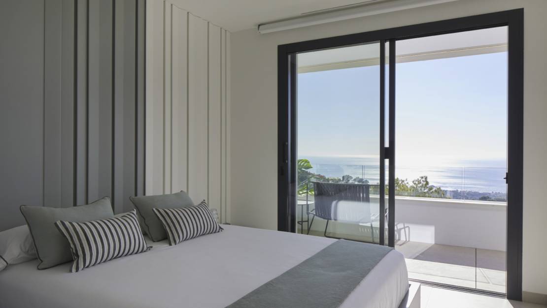 Deze moderne villa is volledig gemeubileerd en sleutelklaar om meteen in te trekken. Met een prachtige locatie in de Sierra de Altea kunt u genieten van een fantastisch panoramisch zeezicht. De villa is verdeeld over drie verdiepingen. De bovenste verdieping herbergt een garage voor twee auto's en de inkomhal die ons verbindt met de rest van het huis. Op de middelste verdieping bevinden zich drie van de vier slaapkamers van dit huis: twee ruime hoofdslaapkamers en twee extra slaapkamers. Een van de hoofdslaapkamers biedt een prachtig uitzicht op zee, heeft toegang tot een privéterras, en beschikt over een en-suite badkamer en een kleedkamer. De andere twee slaapkamers hebben ook elk een eigen badkamer, ruime kasten en delen een gemeenschappelijk terras. Bovendien zijn er extra kasten beschikbaar in de gang. De begane grond is verdeeld in twee zones, gescheiden door de hal en de trap. Aan de ene kant bevindt zich de vierde slaapkamer met een eigen badkamer, kleedruimte en toegang tot het hoofdterras met veranda. De andere zone omvat een gastentoilet, een open keuken verbonden met de eetkamer, compleet met een centraal kookeiland en ontbijthoek, en een lichte woonkamer met toegang tot de veranda. Buiten is er een groot terras en een overloopzwembad, van waar u van het prachtige uitzicht kunt genieten. De villa is bovendien uitgerust met een lift, een beveiligingssysteem, vloerverwarming, airconditioning, technische verlichting en tuinruimtes. Ontwerp, uitrusting, kwaliteit en een adembenemend uitzicht op de Middellandse Zee wachten op u in Altea, aan de Costa Blanca Noord.