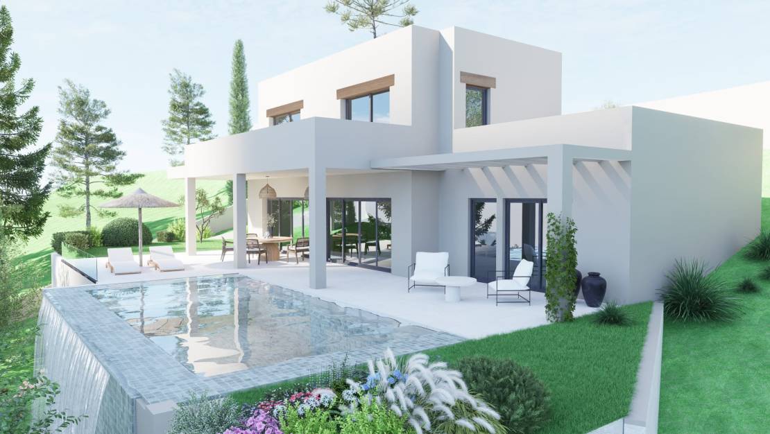 Nieuwbouw villa te koop in Rafalet, Jávea Deze villa zal klaar zijn tegen maart 2026 (onder voorbehoud) en is gelegen in de urbanisatie Rafalet op 3 km van het strand van Jávea. De villa is gelegen op een perceel van 968 m2 en heeft een bebouwde oppervlakte van 370 m2 verdeeld over drie verdiepen. Ter hoogte van de straat zijn er twee parkeerplaatsen en is er toegang tot de bovenverdieping waar zich de inkomhal bevindt en twee tweepersoonsslaapkamers, elk met een en suite badkamer en een ruim privéterras. De benedenverdieping bestaat uit een ruime woon-eetkamer met een open keuken met een kookeiland en een voorraadruimte, een hoofdslaapkamer met een en suite badkamer met dubbele wastafel en een gastentoilet. Zowel vanuit de woonkamer als vanuit de slaapkamer is er toegang tot het terras aan het zwembad. De semi-kelderverdieping bestaat uit een slaapkamer/kantoor met een patio, een gym, een wasruimte, een aparte badkamer, een opslagruimte en een polyvalente ruimte van 45 m2 met een en suite badkamer. Deze ruimte heeft ramen waardoor een vijfde slaapkamer hier mogelijk zou zijn. Buiten is er een ruim overdekt terras en een overloopzwembad omringd door een zonneterras. De urbanisatie Rafalet ligt op een steenworp afstand van de golfclub van Jávea en op en op 2 km van het historisch centrum van Jávea. Het strand en de haven zijn op 10 minuten rijden bereikbaar.