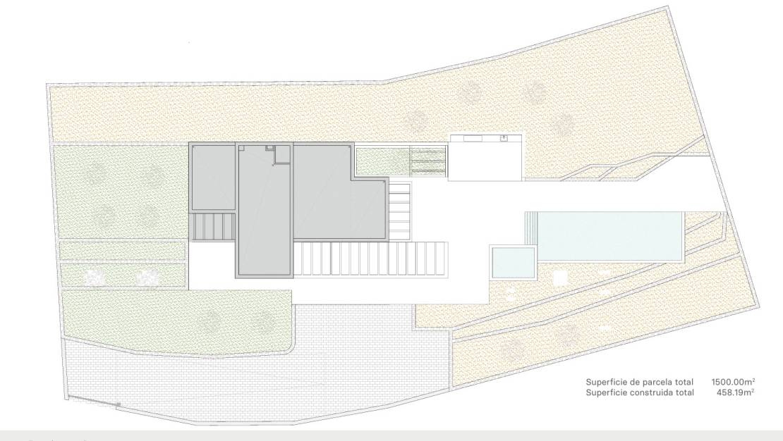 Deze nieuwbouw villa zal gebouwd worden op een ruim perceel van 1500 m2 in de luxueuze urbanisatie Raco de Galeno op 2 km van de prachtige kust van Benissa. De villa heeft een totale bebouwde oppervlakte van 459 m2 verdeeld over twee verdiepen + een kelderverdieping met een dubbele garage. De benedenverdieping bestaat uit een ruime woon-eetkamer met een moderne, open keuken, een slaapkamer met een en suite badkamer en een privéterras en een gastentoilet.  Op de bovenverdieping bevinden zich nog drie luxueuze slaapkamers, elk met een en suite badkamer en een dressing. Eén slaapkamer heeft via schuiframen toegang tot een privéterrás en de andere twee slaapkamers delen een zeer ruim terras. De kelderverdieping bestaat uit een garage met parkeerruimte voor twee wagens, een inkomhal en een gastentoilet. Buiten is er een zwembad omringd door meerdere terassen zowel overdekt als onoverdekt. De villa heeft een ruime oprijlaan met toegang tot de garage. Er wordt een pre-installatie voor zwembadverwarming geïnstalleerd en een pre-installatie voor een alarmsysteem. Het klimaatregelingssysteem dat wordt geïnstalleerd is het AEROTHERMIA-systeem voor warmte en koeling en vloerverwarming door het hele huis met AIRZONE-systeem. Het project beschikt al over een licentie en kan op een jaar gebouwd worden.