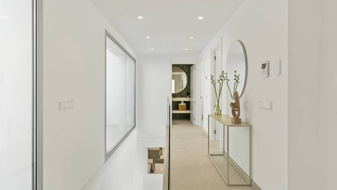 In het residentiële Jazmines, Cumbre del Sol kijkt u in Villa Indigo uit op de zee als het ware vanuit een bewoonde sculptuur. Het sobere en geometrische ontwerp past zich aan de helling van het terrein aan en creëert een woning die zich niet opdringt, maar op natuurlijke wijze opgaat in het landschap. Het licht, de zeebries en de horizon worden hier onderdeel van het dagelijkse leven. De woning is verdeeld in verschillende niveaus die naar beneden lopen richting zee en solariums, terrassen, leefruimtes en tuinen worden in een harmonieuze opeenvolging aan elkaar geschakeld. De interieurs vallen op door hun ruimte en licht, met een woonzone waarin de zit- en eetkamer uitgeven op het buitenterras met een prachtige infinity pool. De drie slaapkamers, ontworpen voor rust en privacy, bieden toegang tot een eigen terras met een adembenemend uitzicht over het blauw van de Middellandse Zee. Villa Indigo kiest voor efficiëntie zonder in te leveren op comfort: voor verwarming en koeling is de woning uitgerust met ventilatiesystemen met warmteterugwinning, vloerverwarming, zonne-energie en er is een installatie voor een elektrische laadpaal. Dit alles wordt gecombineerd met hoogwaardige materialen en afwerkingen waarmee het eigentijdse karakter van de villa nog sterker wordt onderstreept. Vanaf de terrassen kijkt u uit op een eindeloze zee, die verdwijnt aan de horizon. De kubistische vormen van de architectuur omlijsten een landschap dat verandert volgens het daglicht en nodigen uit tot een leven van rust, in stijl en constante verbondenheid met de natuur.