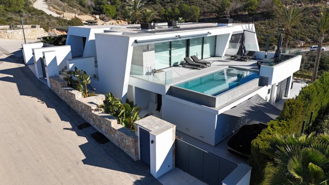 Moderne luxe villa met panoramisch uitzicht op zee in Jazmines, Cumbre del SolEen exclusieve woning tussen Moraira en Jávea, met een ongeëvenaard uitzicht op de Middellandse ZeeDeze moderne luxe villa is gelegen in de prestigieuze woonwijk Jazmines, binnen de urbanisatie Cumbre del Sol, in de gemeente Benitachell, tussen de charmante plaatsen Jávea en Moraira. Een bevoorrechte locatie met een panoramisch uitzicht dat zich uitstrekt van de uitkijktoren van Portet de Moraira, de rots van Ifach in Calpe en de Sierra de Bernia, omringd door het intense blauw van de Middellandse Zee. Modern ontwerp en functionele indelingDeze recent gebouwde villa, gebouwd in 2024, heeft een totale oppervlakte van 398 m² op een hoekperceel van 885 m². Het architectonische ontwerp combineert strakke lijnen, grote ramen en hoogwaardige materialen die het natuurlijke licht en het uitzicht op zee vanuit alle belangrijke ruimtes maximaliseren. De woning is verdeeld over twee verdiepingen die met elkaar verbonden zijn door een binnentrap: HoofdverdiepingRuime woonkamer met open keuken, volledig uitgerust met Miele-apparatuur.Bijkeuken.Hoofdslaapkamer met uitzicht op zee, kleedkamer en en-suite badkamer.Twee tweepersoonsslaapkamers met inbouwkasten en een complete badkamer.Directe toegang tot het buitenterras met infinity pool, ideaal om te genieten van de zonsondergang boven de Middellandse Zee.BenedenverdiepingTwee tweepersoonsslaapkamers met en-suite badkamers en directe toegang tot de buitenterrassen en de tuin.Machinekamer en aparte wasruimte.Directe toegang tot het buitenterras met barbecue en chill-outruimte.Buitenruimte ontworpen om het hele jaar door van te genietenDe buitenruimte is ontworpen om optimaal te profiteren van het klimaat van de Costa Blanca. Het terras beneden heeft een zomerkeuken met barbecue, ideaal voor familie- of vriendenbijeenkomsten. Naast de open garage beschikt de villa over een tweede parkeerplaats. Eersteklas afwerking en uitrustingElk detail van deze woning is zorgvuldig geselecteerd om maximaal comfort en energie-efficiëntie te bieden: Vloerverwarming met aerothermisch systeem.Airconditioning via leidingen.Intelligent domoticasysteem.Zonnepanelen voor eigen gebruik.Alarmsysteem met videobewaking.Hoogwaardige materialen voor vloeren, schrijnwerk en sanitair.Een villa waar technologie, comfort en design perfect samengaan. Wonen in Jazmines, Cumbre del SolDe woonwijk Jazmines is een van de meest exclusieve wijken van Cumbre del Sol. De wijk onderscheidt zich door zijn ruime percelen (tussen 800 m² en 1.200 m²), zijn geconsolideerde en rustige omgeving en vooral door zijn panoramische uitzichten die reiken van het eiland Ibiza tot de Sierra de Bernia. Jazmines ligt naast de woonwijken Kalmias en Lirios en biedt uitstekende verbindingen en nabijheid tot alle voorzieningen: Cala Moraig, een van de meest spectaculaire baaien van de Costa Blanca.Internationale school Lady Elizabeth, bekend om haar uitstekende onderwijs.Restaurant La Cumbre, supermarkten, apotheek en sportcentrum met padel- en tennisbanen.Op slechts enkele minuten rijden van het centrum van Moraira en het charmante strand van Portet.Wonen in Jazmines betekent genieten van privacy, exclusiviteit en een ongeëvenaard uitzicht. Uw nieuwe leven aan de Middellandse ZeeDeze villa biedt een unieke kans voor wie op zoek is naar een moderne, efficiënte woning met een spectaculair uitzicht in een van de meest gewilde enclaves van de noordelijke Costa Blanca. Perfect als hoofdverblijfplaats, als tweede woning of als hoogwaardige investering. Neem vandaag nog contact met ons op om een bezichtiging te regelen en persoonlijk te ontdekken wat deze woning u te bieden heeft. Wij begeleiden u graag bij elke stap om de woning te vinden waar u altijd al van gedroomd heeft.