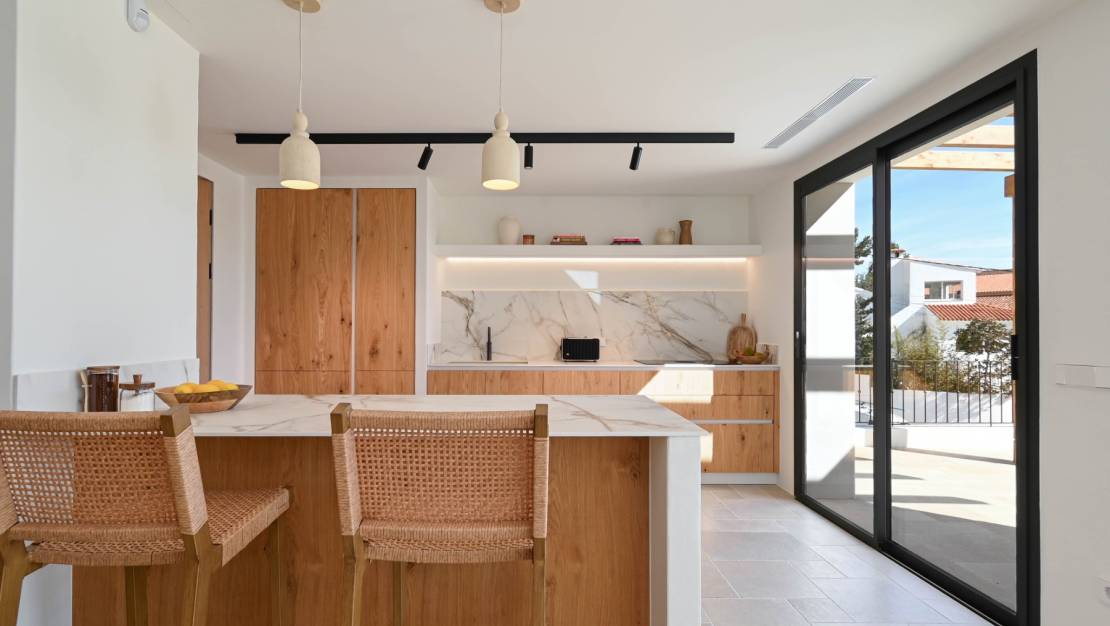 Gloednieuwe woning in mediterrane stijl met uitzicht op zee, gelegen in een zeer rustige en bevoorrechte omgeving, op slechts 2 km van Moraira. De woning beschikt over 4 slaapkamers, elk met een eigen badkamer, plus een gastentoilet. Buiten is er een barbecuehoek naast het zwembad met een volledig uitgeruste badkamer.