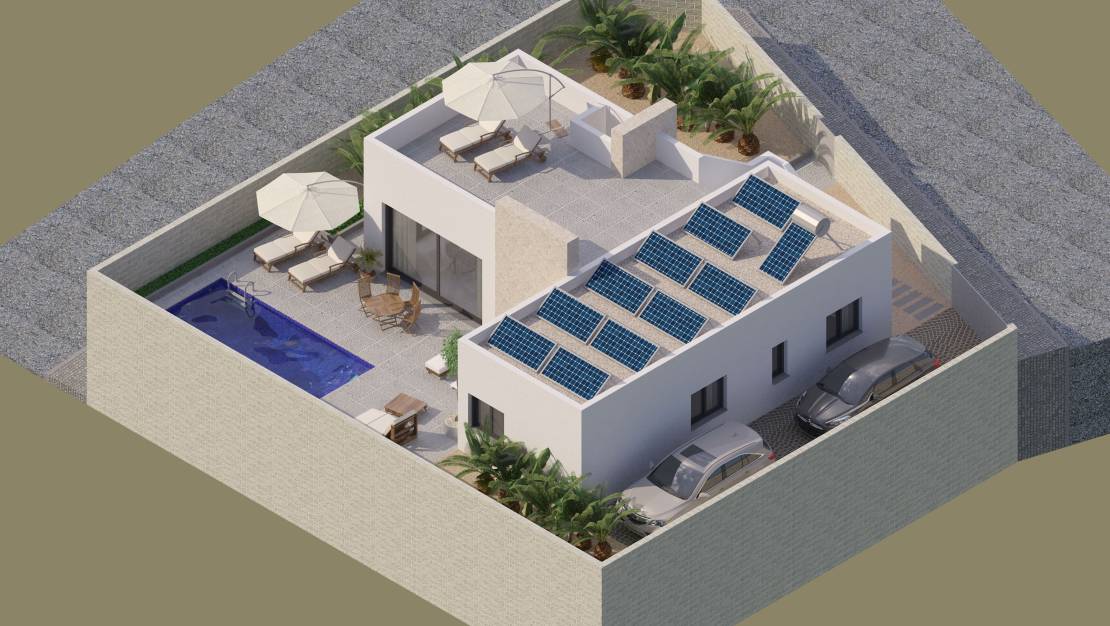 Zewnętrze tej wolnostojącej willi w Benijófar zostało zaprojektowane, aby maksymalnie wykorzystać klimat śródziemnomorski. Posiada prywatny ogród, który oferuje idealną zieloną przestrzeń do relaksu lub aktywności na świeżym powietrzu. Taras jest idealny na posiłki na świeżym powietrzu lub po prostu cieszenie się widokami okolicy. Ponadto, nieruchomość obejmuje prywatny basen, luksus, który pozwala na ochłodzenie się i korzystanie ze słońca w zaciszu własnego domu. Solarium to kolejna atrakcja, oferująca dodatkową przestrzeń do opalania się lub podziwiania panoramicznych widoków.