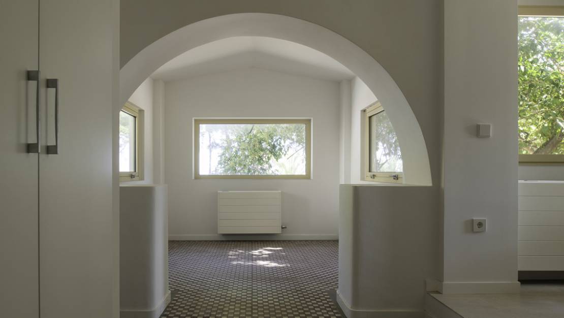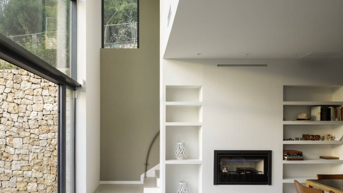 Dom posiada cztery przestronne sypialnie i sześć w pełni wyposażonych łazienek, a także wewnętrzną windę, kilka tarasów z panoramicznym widokiem na morze oraz prywatny ogród. Duże okna zapewniają naturalne światło przez cały dzień i zapewniają wizualny kontakt z otaczającą przyrodą i Morzem Śródziemnym.