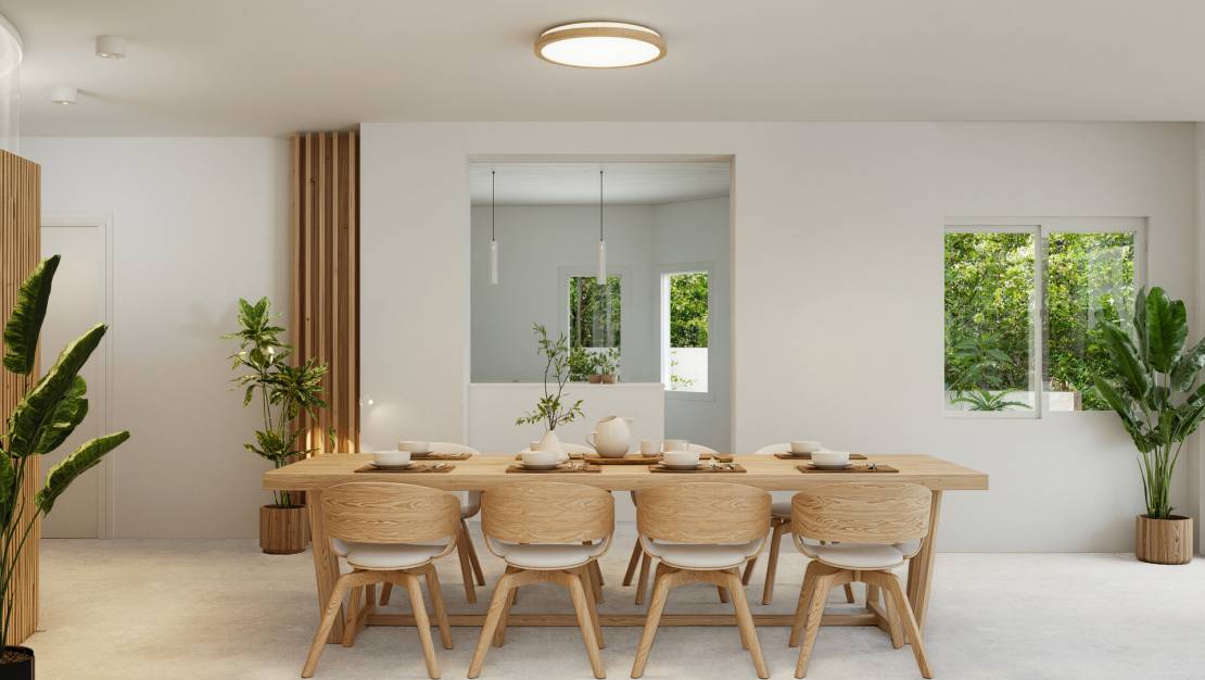 Wnętrze willi zostało zaprojektowane, aby zapewnić maksymalny komfort i funkcjonalność. Z czterema sypialniami i czterema łazienkami, układ jest idealny dla dużych rodzin lub przyjmowania gości. Wbudowane szafy w sypialniach zapewniają dużo miejsca do przechowywania, utrzymując porządek i organizację. Willa jest wyposażona w klimatyzację, gwarantującą świeże powietrze w najgorętsze miesiące. Dodatkowo, posiada ogrzewanie podłogowe, co zapewnia optymalny komfort cieplny przez cały rok. Kuchnia jest wyposażona w nowoczesne urządzenia, ułatwiając codzienne czynności i pozwalając cieszyć się gotowaniem w domu. Obecność garażu dodaje wygody i bezpieczeństwa dla parkowania pojazdów.