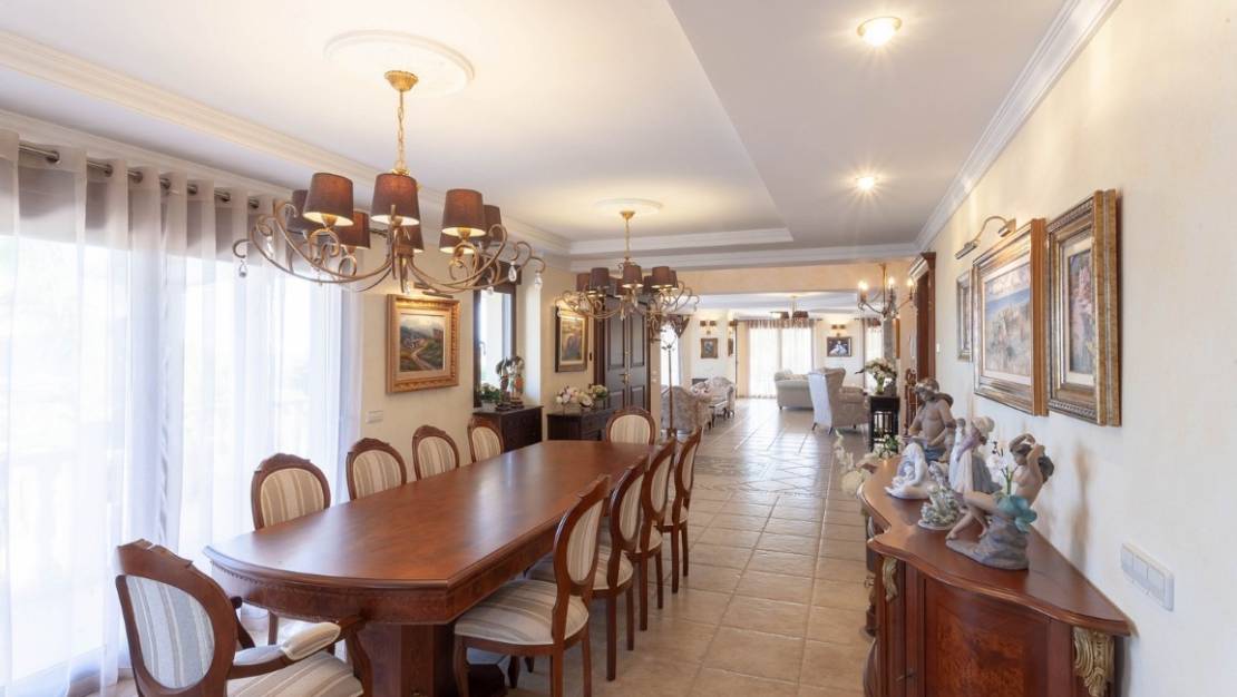 Ta wspaniała, przestronna hiszpańska willa położona jest w wyjątkowym miejscu i oferuje zapierające dech w piersiach, panoramiczne widoki na okolicę i morze. Willa rozłożona jest na trzech piętrach. Na pierwszym piętrze znajduje się przestronny salon z dwoma oddzielnymi strefami wypoczynkowymi i jadalnią. Dodatkowo, znajduje się tam przestronna, w pełni wyposażona kuchnia oraz toaleta dla gości. Na drugim piętrze znajdują się 3 sypialnie dwuosobowe z łazienkami oraz sypialnia główna z łazienką. Wszystkie sypialnie mają bezpośrednie wyjście na przestronny balkon, który rozciąga się na całą długość willi. Na niższym piętrze znajduje się sypialnia dwuosobowa z łazienką, siłownia, sauna, jacuzzi, pralnia oraz garaż na 4 samochody. Ta piękna willa oferuje również basen o powierzchni 80 m², w pełni wyposażoną kuchnię na świeżym powietrzu, kilka zadaszonych tarasów oraz piękny, zagospodarowany ogród śródziemnomorski, z którego można podziwiać panoramiczne widoki na morze.