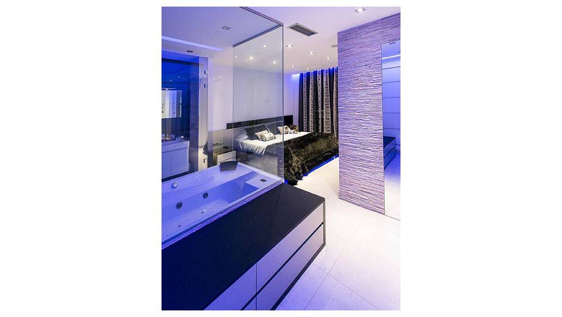 Wnętrze willi jest wyposażone we wszystkie nowoczesne udogodnienia, aby zapewnić komfortowe życie. Nieruchomość jest w pełni umeblowana, co ułatwia natychmiastową przeprowadzkę. Kuchnia jest wyposażona w najnowszej generacji sprzęt AGD, a system automatyki domowej umożliwia łatwe sterowanie różnymi aspektami domu. Klimatyzacja i ogrzewanie podłogowe zapewniają przyjemne warunki przez cały rok. Elektryczne rolety i wbudowane szafy dodają funkcjonalności i stylu przestrzeniom wewnętrznym. Spa i jacuzzi oferują idealne miejsce do relaksu i regeneracji po długim dniu.