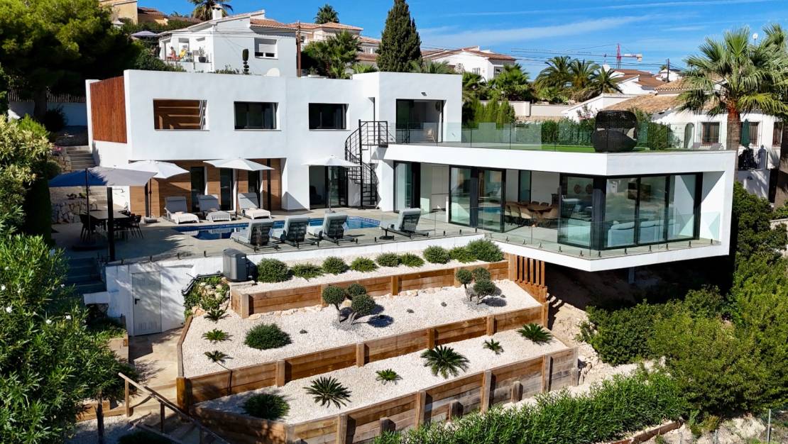 Odkryj tę nowoczesną willę na sprzedaż w Moraira, położoną w idealnej lokalizacji z pięknym widokiem na dolinę, morze i zatokę El Portet. Nieruchomość łączy nowoczesny design z optymalnym komfortem życia. Idealna dla osób poszukujących przestronnego domu na Costa Blanca. Nieruchomość oferuje cztery przestronne sypialnie i cztery nowoczesne łazienki, rozmieszczone na dwóch piętrach.