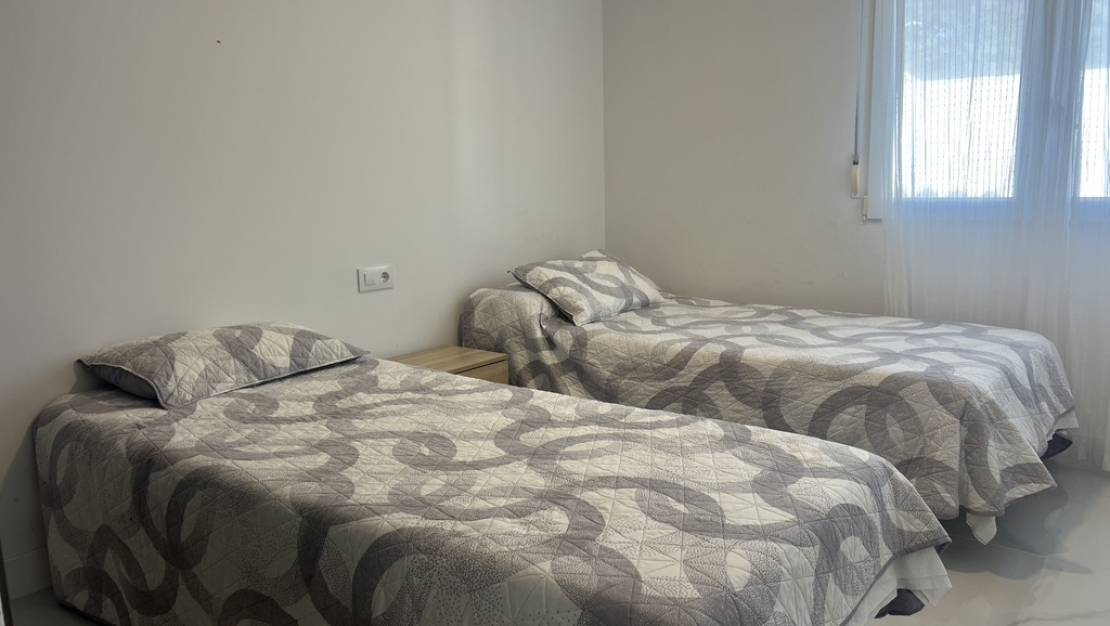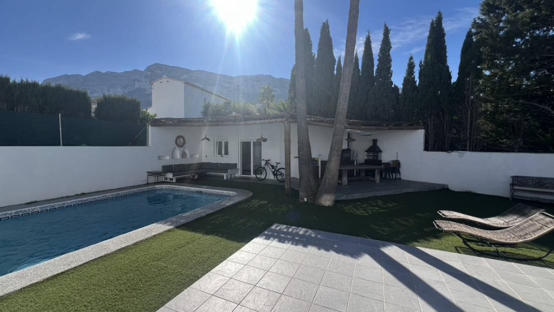 Główna willa oferuje przestronny salon z otwartą jadalnią na parterze, nowoczesną kuchnię i dwie sypialnie z łazienkami. Na piętrze znajduje się apartament główny z prywatną łazienką, garderobą i tarasem z zachwycającym widokiem na górę Montgó.