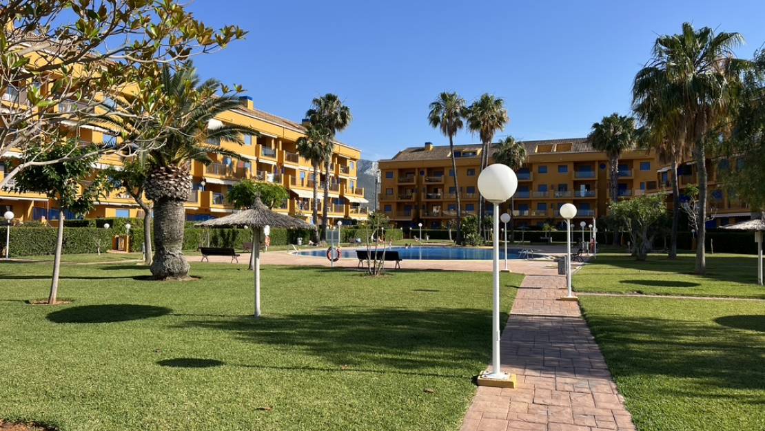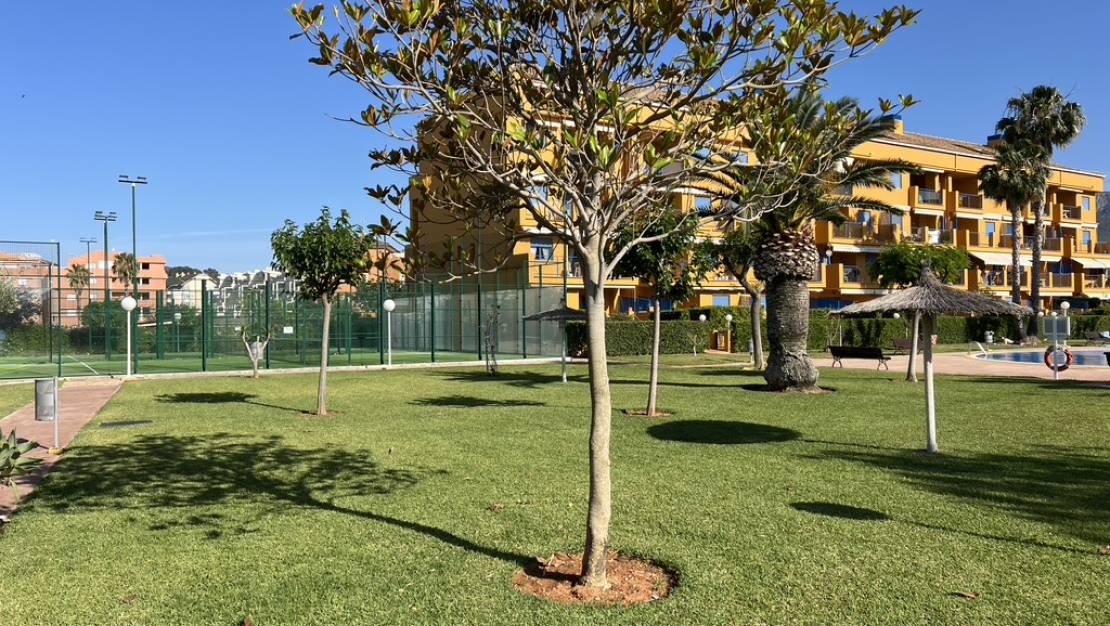 Nieruchomość jest częścią zadbanego osiedla z dużym basenem, usługami concierge i nowymi kortami do padla, oferując bezpieczne i przyjemne otoczenie.