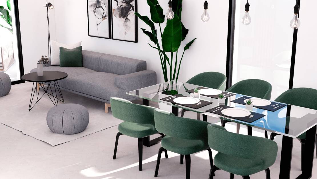 Wnętrza mieszkań zostały starannie zaprojektowane, aby zapewnić komfort i nowoczesność. Apartamenty, jednostki na parterze i penthousy posiadają podłogi z gresu porcelanowego, które dodają elegancji i są łatwe w utrzymaniu. Wszystkie nieruchomości są wyposażone w klimatyzację, zapewniając przyjemne środowisko przez cały rok. Wbudowane szafy oferują dużo miejsca do przechowywania, a wideodomofon dodaje dodatkowy poziom bezpieczeństwa i wygody. Układ obejmuje dwie sypialnie i dwie łazienki, dostosowując się do potrzeb różnych typów rodzin.