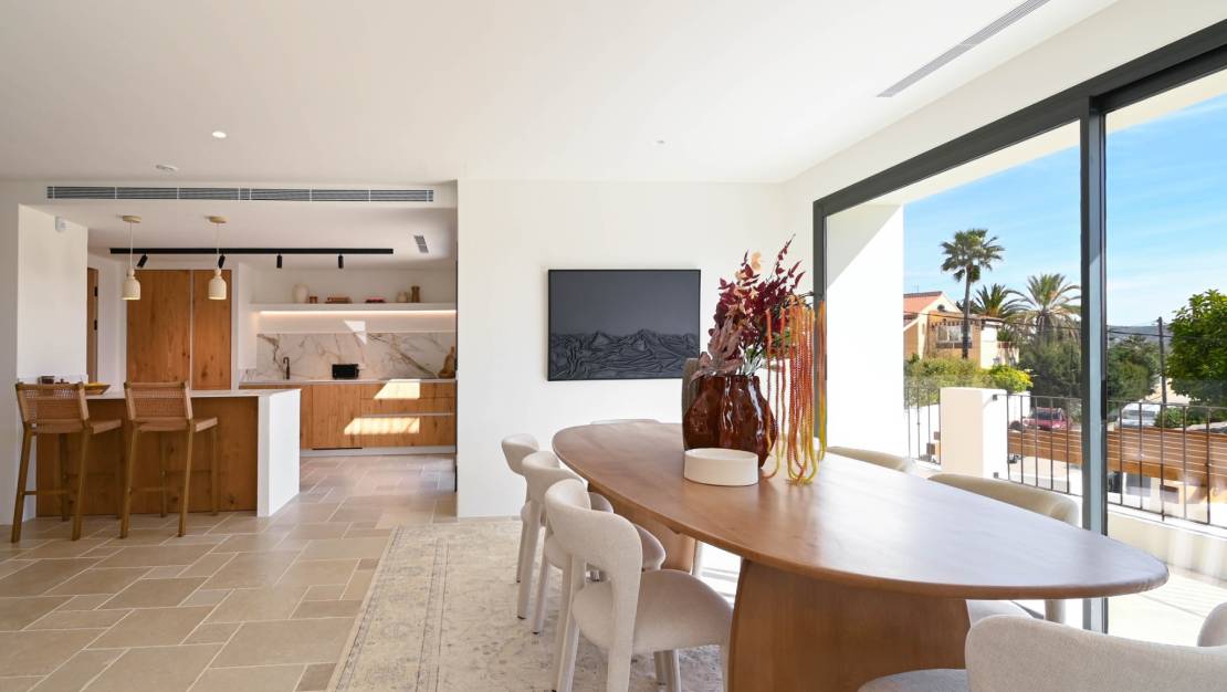 Zupełnie nowy dom w stylu śródziemnomorskim z widokiem na morze, położony w bardzo cichej i prestiżowej okolicy, zaledwie 2 km od Morairy. Dom posiada 4 sypialnie, wszystkie z łazienkami en-suite, a także toaletę dla gości. Na zewnątrz, obok basenu, znajduje się miejsce do grillowania z w pełni wyposażoną łazienką.