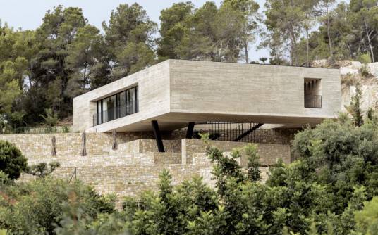 Ta nowoczesna, wysokiej jakości willa o ekskluzywnej architekturze znajduje się w uprzywilejowanej dzielnicy mieszkalnej Racó de Galeno. Wykończenie z betonu i kamienia naturalnego na ścianach wewnętrznych i zewnętrznych nadaje tej wspaniałej posiadłości niepowtarzalnego uroku, spoczywając z tyłu na istniejącym poziomie gruntu, a z przodu na dwóch ogromnych belkach, które tworzą kształt litery „V”. , bardzo przestronny i jasny salon z przeszklonymi oknami od podłogi do sufitu po obu stronach pokoju, zapewniającymi wyjątkową jasność, amerykańską kuchnię doskonale wkomponowaną w jadalnię, toaletę dla gości i pralnię. Schody prowadzą nas z obszernego holu wejściowego na niższy poziom, gdzie możemy cieszyć się dużymi tarasami ze spektakularnym naturalnym basenem przypominającym lagunę. W garażu znajduje się miejsce parkingowe dla 2 pojazdów. Awangardowy design i unikalny układ wokół imponującego centralnego patio nie pozostawiają nikogo obojętnym.
