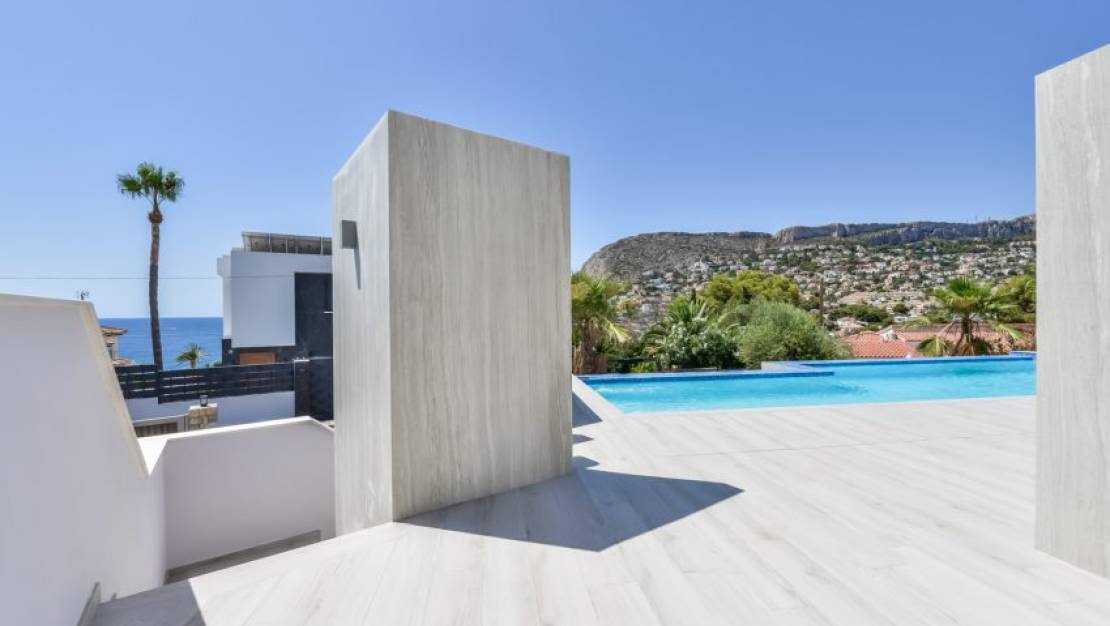 This luxury modern villa with beautiful views to the sea is located in El Tossal, close to the marina, beach and town centre of Calpe. The villa consists in total 6 bedrooms and bathrooms, distributed over three floors. The villa will include underfloor heating with heat pump, central air conditioning, and an optional domotic system.The villa consists of:- Ground floor: large living/dining room with an open kitchen and large glazed doors leading out to the pool terrace. Double bedroom, house bathroom, storage room and a double bedroom with en-suite bathroom.- First floor: master bedroom with dressing room, en-suite bathroom and doors leading out to a terrace, double bedroom with en-suite bathroom and doors leading out to a terrace and there are two further double bedrooms sharing a bathroom.- Basement: garage, laundry room, storage room, fitness room and a shower room- Solarium with amazing views- A dream house very near to the sea, perfect to enjoy the Mediterranean lifestyle.- For further information please do not hesitate to contact us.