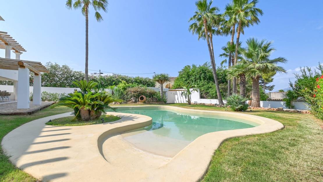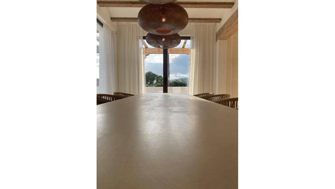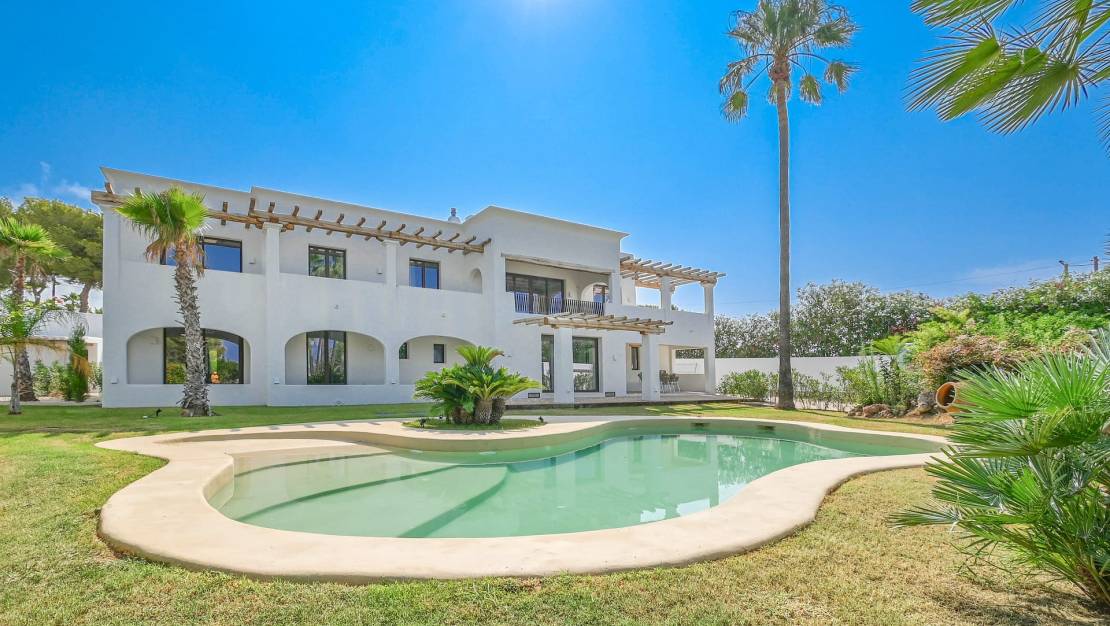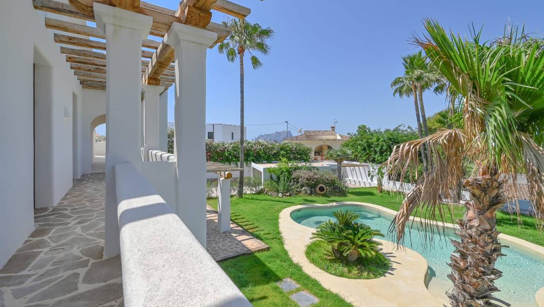 Luxury Villa in Benissa Exquisite Mediterranean Villa – A Masterpiece of Luxury Living A meticulously renovated Mediterranean villa in the prestigious enclave of San Jaime, where luxury meets coastal charm. This exceptional property is a true gem, perfectly positioned within walking distance of the azure sea, gourmet restaurants, chic boutiques, and all essential amenities. Just moments from the renowned Moraira Golf Course, this residence offers the ultimate blend of convenience and sophistication. The property has been designed and finished under the watchful eye of Belgium interior designer - Bart de Beule, with the details and finishes in keeping with his unique and renowned style. From the moment you step inside, you are greeted by an abundance of natural light and breathtaking vistas, including sweeping views of the Mediterranean Sea and the iconic Peñón de Ifach. The villa has been masterfully redesigned with a discerning eye for detail, showcasing bespoke finishes and one-of-a-kind materials that exude elegance at every turn. At the heart of the home is a beautifully designed, fully fitted kitchen that blends functionality with timeless elegance. Featuring luxurious travertine countertops in combination with a forgotten Spanish marble and state-of-the-art appliances, this space is perfect for both culinary creations and entertaining. In addition to the showcase kitchen you also have the use of a fully fitted prep kitchen - situated just off the dining area for seamless entertaining. The beautiful living area, located on the first floor, seamlessly extends to an outdoor dining terrace and a private balcony, creating an idyllic setting for al fresco dining against a backdrop of stunning coastal views. Furthermore you have addition access to the solarium which offers more posabilites for seating or entertaining options. This luxurious residence boasts five opulent double bedrooms, each with its own sumptuous en suite bathroom with walk in showers which feels like your standing on wet sand, custom fitted cabinetry and mood lighting elements. The master bedroom en suite is a truly opulent space to unwind in the freestanding bathtub. The custom lighting options can set the scene for a truly magical spa like experience. In addition to the bedrooms you have on the first floor a generously appointed office - fully prepared and fitted with custom high quality cabinets and desk. The primary living areas are thoughtfully distributed across two levels. The villa also includes a lower room - perfect for either a dedicated wine cellar for storing and displaying an extensive collection of fine wines, adding yet another layer of luxury to this exceptional home. The exterior of the property is equally captivating, featuring a mature Mediterranean garden that invites relaxation and entertaining with its beautifully landscaped spaces and a dedicated barbecue area. The gardens are fully irrigated and the free form swimming pool is a masterful example of both quality and finish. Additional highlights include a spacious double garage with ample room for two cars and additional storage. Solar efficient for both heating and integrated A/C. The house is fitted with integrated speakers and SONOS connection, and remote systems to control the lighting and heating options. Crafted with the finest materials and the utmost attention to quality, this villa epitomizes high-end living. Every element of the home has been curated to provide a luxurious and unique experience, making this property a rare and coveted find. Indulge in the ultimate Mediterranean lifestyle in this extraordinary villa, where every detail has been meticulously designed for those who demand the best. About the area Benissa / Benissa Coast The main historic town of Benissa is located a short drive inland from the coast around 275 m above sea level and is one of the oldest towns on the Costa Blanca. The town is famous for its lively fiestas and beautiful churches and it’s coastline has a reputation for possessing some of the most beautiful coves in the area such as Baladrar, Advocat or Fustera. Along the winding coastline that links Moraira to Calpe you will find some truly beautiful luxury properties and quiet residential areas popular for both permanent living or for rental investment. For more information on this Luxury Villa in Benissa please contact us