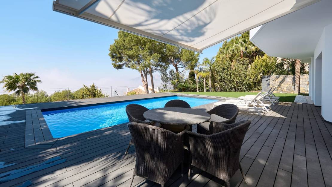 Luxury Modern Villa in Altea Nestled within the prestigious confines of Altea Hills, overlooking the azure expanse of the Costa Blanca, lies an architectural marvel that epitomizes luxury living: a stunning, fully renovated modern villa. This exclusive residence, moreover, stands as a testament to sophistication and security, featuring twenty-four-hour surveillance and a coveted south orientation. Which ensures unparalleled views and natural light throughout the year. Ascend the elegant staircase or glide effortlessly in the private elevator to explore three meticulously designed levels of opulence. The main floor beckons with a seamless fusion of open-plan living and dining areas, harmoniously intertwined with a state-of-the-art kitchen. Expansive glass sliding doors dissolve the boundaries between indoors and out, unveiling panoramic vistas of the Altea coastline. Here, a sumptuous double bedroom with an en-suite bathroom awaits, offering direct access to the terrace and glistening pool beyond. Venture upward to discover a sanctuary of comfort on the second floor, where three spacious double bedrooms, each adorned with its own lavish en-suite, await. Step out onto the sprawling balcony and indulge in breathtaking views of the Mediterranean Sea, a serene backdrop for moments of tranquility. Perched atop this architectural masterpiece lies a fully independent guest apartment, featuring an inviting open-plan layout. A guest bathroom, and a generously appointed double bedroom with an en-suite sanctuary of its own. Outside, a lush Mediterranean garden envelops the estate, framing a sprawling terrace punctuated by a shimmering pool and multiple al fresco dining areas. A dedicated barbecue zone is beckoned to, with unforgettable gatherings under the sun or stars promised, ensuring that every moment is savored in style. Welcome to a realm of refined luxury and coastal serenity. Where every detail has been meticulously curated to offer an unparalleled living experience amidst the splendor of Altea Hills. ABOUT THE AREA Altea Hills Very much a sought after and wealthy part of the Costa Blanca. The combination of a picturesque historic centre filled with boutiques and fabulous restaurants and a lively boardwalk make Altea a popular destination. A perfect town for both permanent living or investing. The north of Altea is protected by the Serra de Bèrnia mountains, creating an especially mild microclimate. And the town is located only a few kilometers from the city of Benidorm. The bustling town of Calpe Altea Hills in considered one of the premier residential locations in the region. If you wish to arrange a private viewing of this Luxury Modern Villa in Altea, please contact us today!
