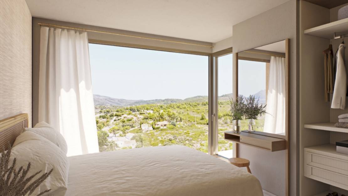 This sustainable property is located in a residential complex of sustainable homes in the beautiful Vall de Pop valley. The architecture of the villas is based on the colours of the earth, on the dry stone walls, on the indigenous vegetation of the area, blending the homes into the landscape of the Vall del Pop. Their design and equipment promotes low energy consumption. The houses have an aerothermal system for heating and producing domestic hot water, underfloor heating and a heating system for the bathrooms., installation of photovoltaic panels, motorised ventilation system, electric car charging point, domótica, terrace gardens with traditional stone walls and indigenous plants, among other elements. The villas are built on plots of 400 to 700 square metres, spread over two floors. They are three-bedroom detached villas, with two layout concepts to choose from. The surface area of the houses is about 315 square metres, and each has its own swimming pool, parking space, storage room and impressive open views of the vineyards and the beautiful natural surroundings of the Vall del Pop. In this model, the living-dining room, kitchen and d master bedroom with en suite bathroom are located on the ground floor, all connected to the outdoor areas. A very comfortable layout for those who like to have everything on the same level. Upstairs, there are two more bedrooms, a study room, a laundry room and a terrace offering 360-degree views of the beautiful mountainous surroundings. Outside, a summer dining room located under a pergola and directly communicated with the kitchen is a swimming pool with terrace surrounded by gardens with olive trees, almond trees, rosemary, thyme, etc. aromas that flood you to strengthen the connection with nature and enjoy the natural surroundings. The residential urbanisation will also have an organic vegetable garden to spread the agricultural tradition of the area, a social club, a meeting place for residents, a restaurant, an outdoor pool, an indoor pool, a gym, physiotherapy and treatment rooms, a wine club, a large green area with photoluminescent paths, playgrounds, picnic area, a yoga deck, a dog park, a calisthenics park, an entire concept based on the well-being of residents and respect for the environment. Please note that prices are informative and depend on the model and availability. The images are indicative and correspond to the selected model adapted to a specific plot, therefore its implementation on another plot will involve changes in the facades and components due to the adaptation to the terrain. Located in the province of Alicante, Llíber is an ideal destination if you are looking for history, nature and gastronomy. Located in the Vall de Pop surrounded by vineyards and mountains, it is the ideal destination for nature and sports lovers. Nevertheless, it is less than 15 minutes from the bustling coastal town of Calpe, where several beaches and beautiful coves await you.