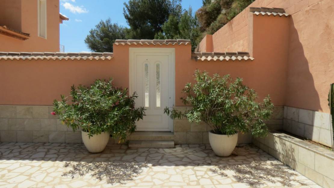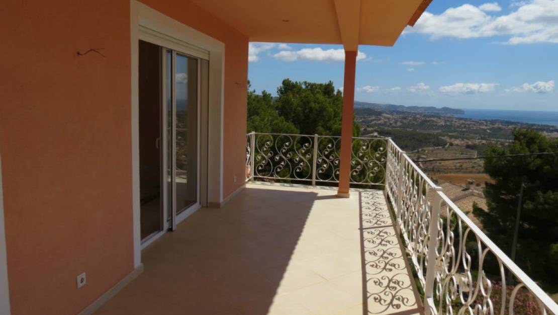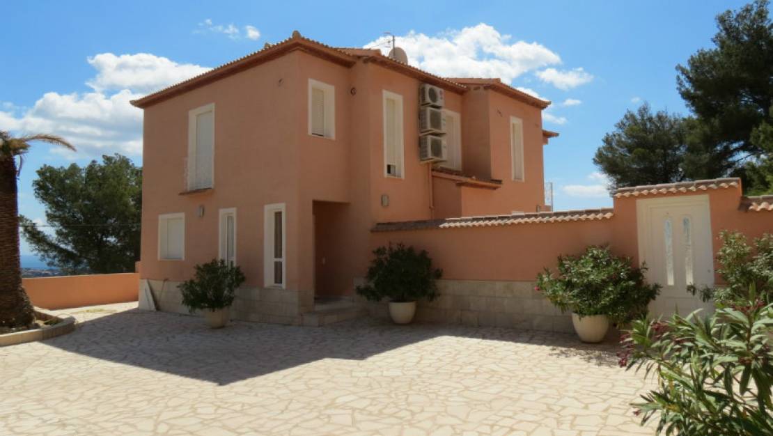 Beautiful modern villa with an amazing panoramic sea view located in the peaceful area of Oltamar, eight minutes drive from the town and beaches of Calpe. This property was built to a high standard in 2010 with the utmost attention to detail. Distributed over two floors, the villa consists of a large living/dining room, a "state of the art" fully fitted kitchen with grey units and pale granite worktops and a cooking island with island extractor, bedroom, bathroom, bedroom two with en-suite bathroom, master bedroom with dressing area, private terrace with fabulous views and a fantastic en-suite bathroom including large walk-in shower and a whirlpool bath where you can lie and enjoy the views and a separate laundry room. There is a large pool terrace with pool, separate jacuzzi, pool shower room and walls prepared for a barbecue. There is parking for four cars on the driveway which has electric gates and a 56m2 double garage which could be used to create extra living space. The garden is mainly terraced with natural stone with garden borders planted with palms and plants.- Key points:- Quiet location but only eight minutes drive to the town and beaches- PVC double glazed with 16mm security glass and electric persianas- Electric underfloor heating regulated in each room- Air conditioning hot/cold- Telephone and ADSL- Satellite television- Audio system- Water deposit 30,000 litres- Electric gates- Pool prepared for heating - Offered furnished- Possibility to buy as a company rather than a private purchase- At this new price early viewing is recommended