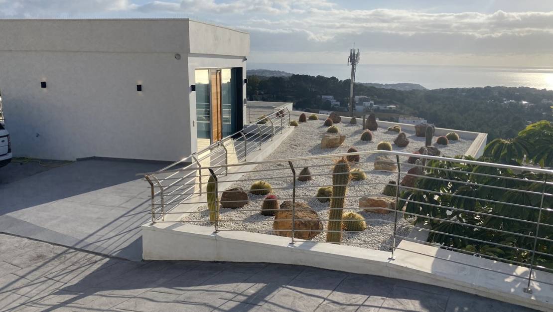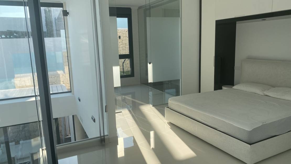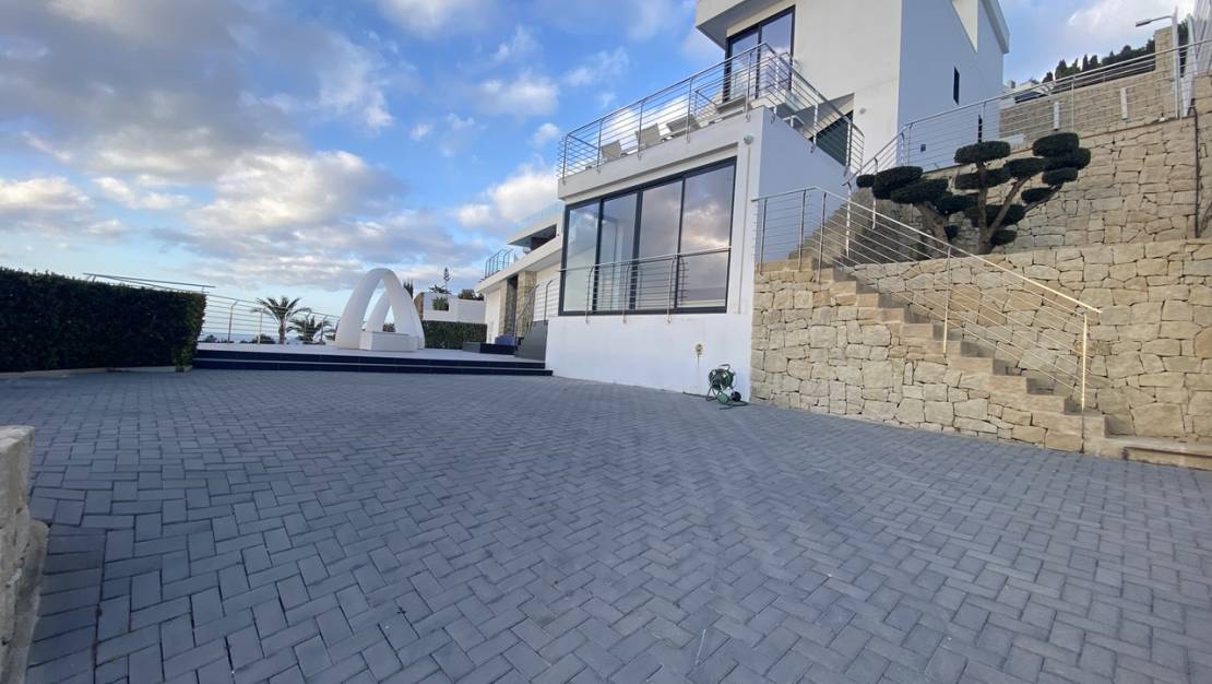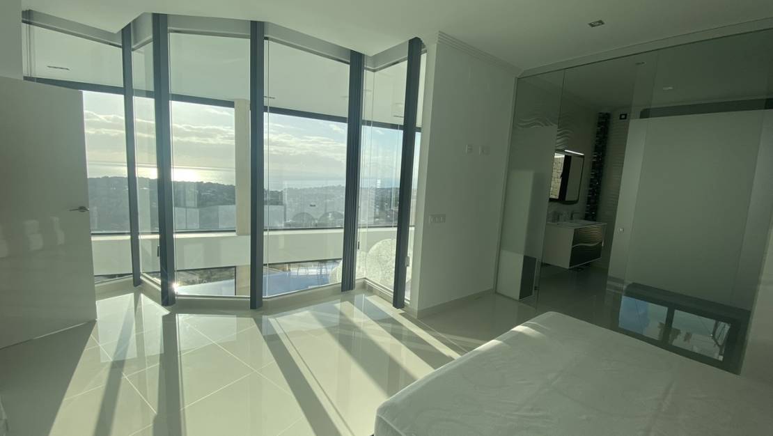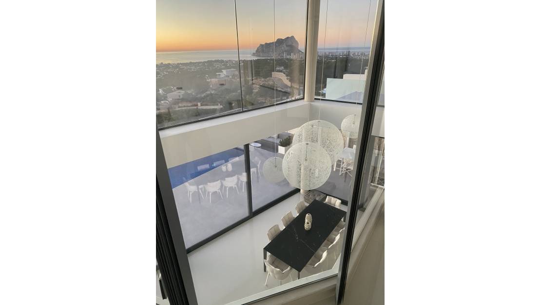 We are pleased to be offing this amazing villa located in a prestigious residential area, just 1,500 meters from the sea, this property offers extraordinary views of the sea and the Rock of Ifach, symbol of the Costa Blanca.The villa is distributed over 4 floors on a large plot of 1,800 m2 with a constructed area of 542 m2. On the upper level you enter a square with two parking spaces and go down a staircase or elevator to the lower floor where there are three bedrooms with en suite bathrooms.The master bedroom has a spectacular sea view and faces south.On the lower level is the living room of the house at double height and the large kitchen, on the east side there is a large summer kitchen. In front of the living room there is a large outdoor area with a swimming pool and a bioclimatic pergola with a large table for 12 people. Next to the pool there is a built-in sofa protected from the wind overlooking the sea.On the ground floor, there is a gym with a large indoor pool and cedar sauna and a fourth bedroom with en suite bathroom with sea view.In the lower part of the land belonging to the property there is a small house of 20 m2 which can be used for service staff or as a guest room.The villa has two vehicle entrances, in fact, from the bottom of the property there are two other parking spaces covered by a shaded fabric. With the car you can access the ground floor of the house. On the land in front of the property there is a large space with a petanque court.that can be transformed into a paddle court.Without a doubt, one of the most exclusive properties in the area, please contact us for a viewing.