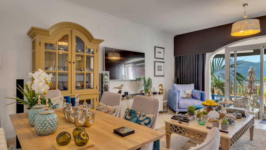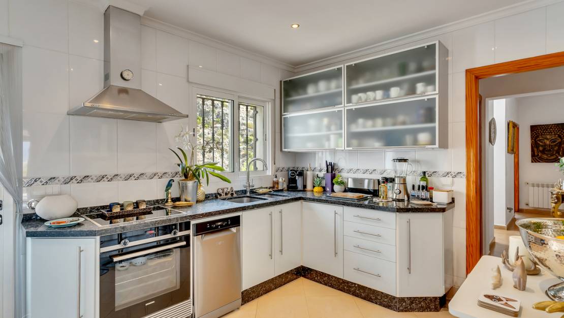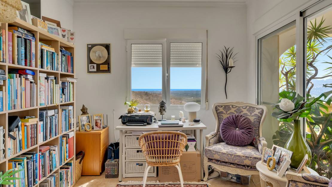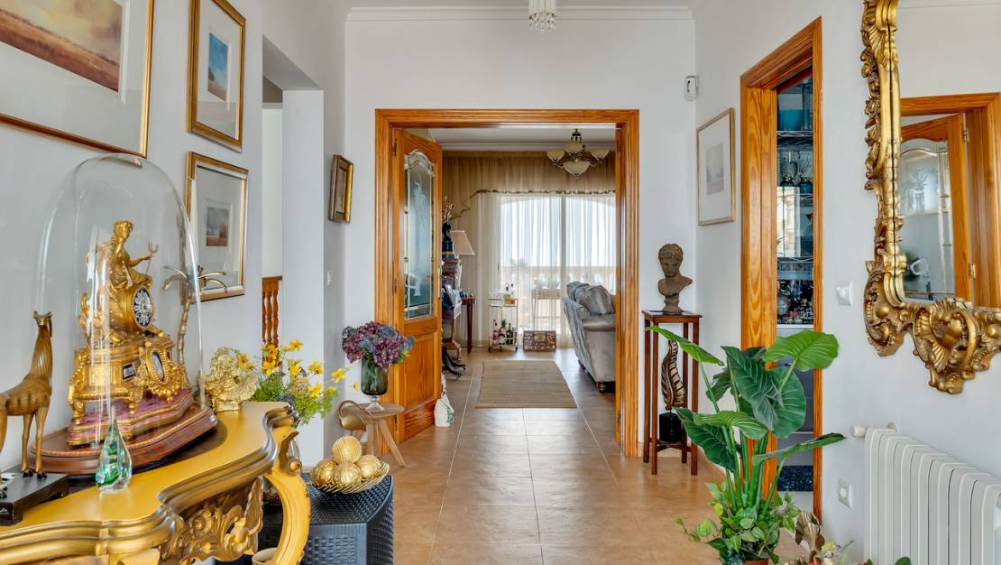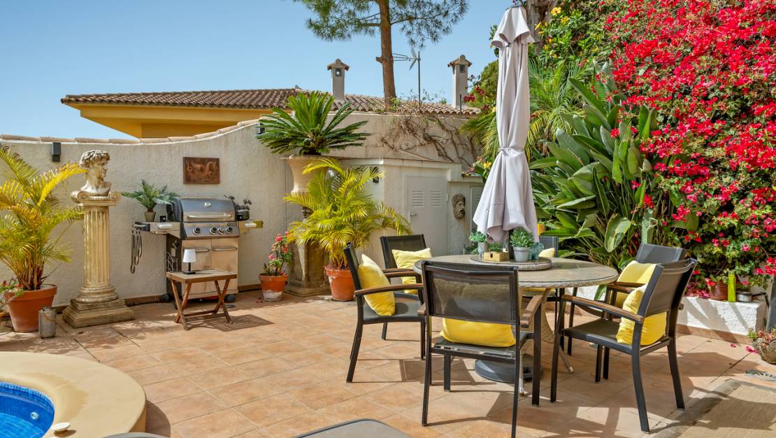 Nestled within the exclusive Mostalla urbanization, this stunning 2005-built villa located on a private ‘no through’ road boasts unparalleled views and a prime location between the charming town of Pego, the picturesque Santa Ana beach, and the Marjal Nature Reserve. Significantly upgraded by the current owners, this spacious and unique property offers exceptional living space, including a main two-level house and a separate apartment.The villa's top-floor accommodation, accessed at street level, features a welcoming hallway, two double bedrooms, a family shower bathroom, a modern and fully-equipped kitchen, and a spacious living/dining room with a log-burner and air-conditioning. This level opens up to a sea-facing covered terrace (naya) that overlooks the orange groves, mountains, and the Mediterranean.Downstairs, the owners' level comprises an exceptionally large master bedroom with a dressing area, air-conditioning, and a private terrace with sea views and direct pool access. Adjacent to the bedroom is a home office, a large bathroom with a shower and bath, a utility room, a fully-fitted kitchen, and a spacious living/dining room with superb outdoor access.A separate external staircase leads to the independent guest apartment, which boasts two large double bedrooms (one en-suite), two shower bathrooms, a large kitchen, and a living/dining area – all with uninterrupted sea views.The villa's outdoor spaces are truly exceptional, featuring a 11x5 meter heated swimming pool, a separate heated jacuzzi, a private pool shower room, and numerous seating and dining areas. The beautifully landscaped gardens, with their flowering plants, palm trees, water features, and private relaxation spots, create a wonderful sense of closeness to nature.This unique property is packed with high-end features, including numerous storage rooms, electric blinds, a wine cellar, a solar panel system (with a Huawei battery) that powers the electricity and heats the pool and jacuzzi, double-glazed windows, and a state-of-the-art security system. With powerful Wi-Fi and download speeds of 68Mbps, this villa truly offers the best of modern living in a stunning natural setting.Just a short 3-minute drive away, the charming town of Pego provides all the necessary amenities, while the beautiful Santa Ana beach and the Marjal Nature Reserve are just 10 and 5 minutes away, respectively. Perfectly situated for exploring the Northern Costa Blanca ( Denia, Javea, Gandia) this villa offers a rare combination of privacy, exclusivity, and easy access to the region's many delights.
