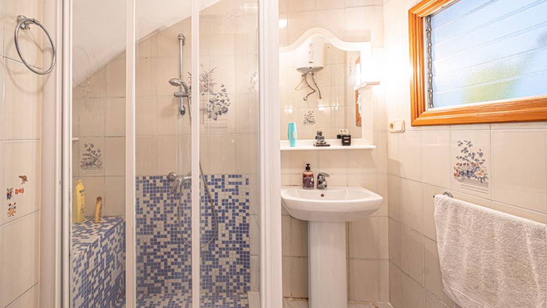 This beautiful, authentic village house was built in 1985. It has always been lovingly treated and is therefore in perfect condition to move in immediately. The house is located in a quiet street in the center of the charming village of Gata de Gorgos. One enters the house in a spacious hall with on the left a staircase leading to the upper floor and on the right a dining room and a lounge. From the lounge we enter a corridor with on the right a kitchen with access to a small patio and at the end a bathroom. From the corridor, through a door we can also return immediately to the entrance hall, from here we take the stairs upstairs. Here we find a large, luxurious bathroom, two double bedrooms and a single bedroom. In addition, there is an extra room from where a staircase leaves to a storage room and the roof terrace. From the roof terrace there is also a view of Montgó and the nature reserve behind Gata de Gorgos. Gata de Gorgos is synonymous with crafts, gastronomy, walks and many other charms to be discovered.