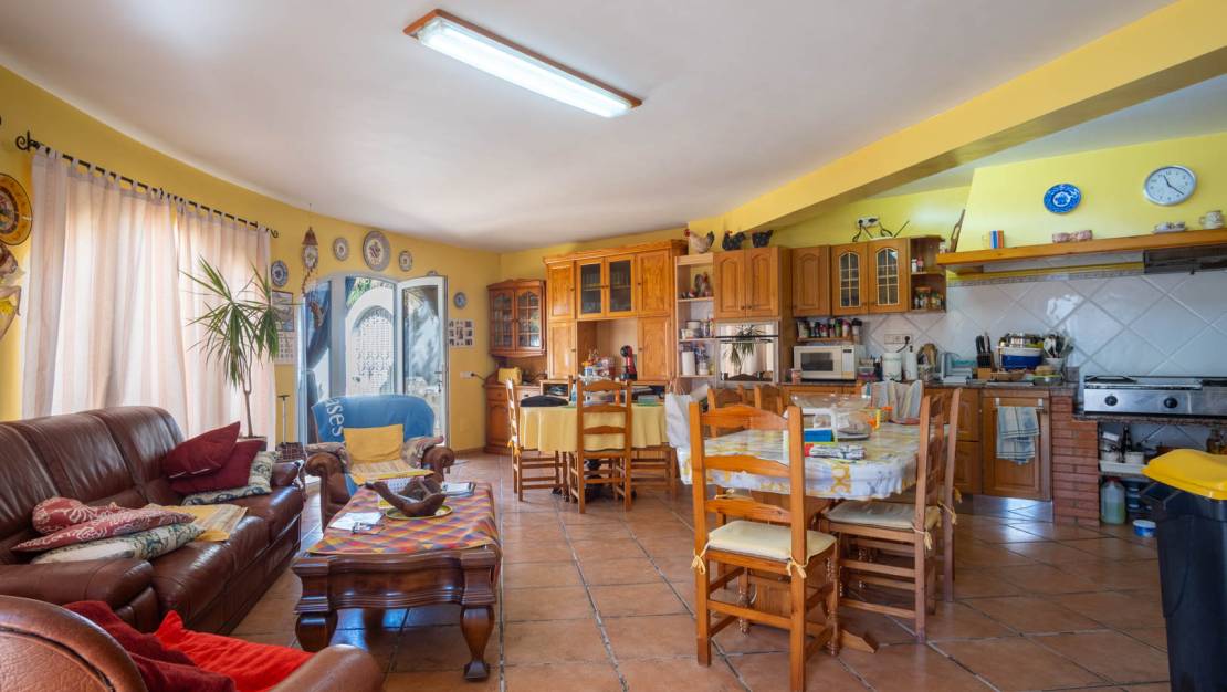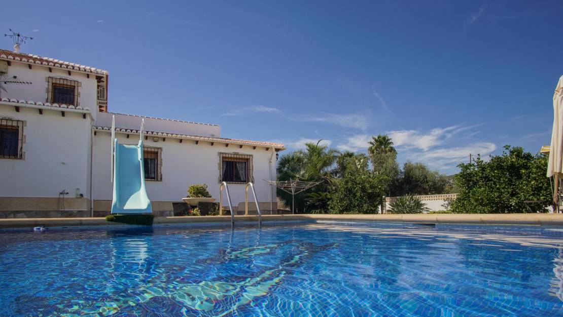 This charming semi-detached villa is located in La Pedrera, Dénia, in a prime location just a stone's throw from the town center yet surrounded by tranquility. The property consists of a main residence and a guest apartment, making it a very versatile option: ideal for families looking for space, for those who want to entertain independently, or even as an investment opportunity.The main residence offers two bedrooms with built-in wardrobes and air conditioning, two full bathrooms (one en suite), a bright living-dining room with a fireplace (currently decorative) inviting you to relax in winter, and a separate kitchen filled with natural light. The guest apartment is spread over two floors: the ground floor features a bedroom with an en-suite full bathroom, and the upper floor features a spacious open-plan room, perfect as an additional bedroom.The exterior of the house is one of its greatest attractions. It has several terraces (covered, glazed, and open) from which you can enjoy stunning views of the Montgó. The private pool is surrounded by a manicured garden with handcrafted fountains that provide a very special ambiance. For those who love outdoor gatherings, the property features a fully equipped, separate, heated summer kitchen and barbecue. There are also various auxiliary spaces that can be used as a storage room, a carport with a pit for vehicle maintenance, another carport with capacity for two cars, a covered garage, and a wine cellar.As for amenities, the house has central heating with oil-fired radiators, solar panels, and a photovoltaic system that guarantees energy efficiency, as well as security cameras and high-speed fiber optics. Beyond its spacious and bright spaces, the property offers something unique: its own well and a 30,000-liter cistern, providing autonomy and sustainability, ideal for those who value nature and self-sufficiency.As an added value, behind the house lies a rustic plot of land, perfect for growing crops, planting fruit trees, or even keeping animals. All of this makes this property a welcoming, lovingly maintained home with endless possibilities for enjoying life in Dénia.