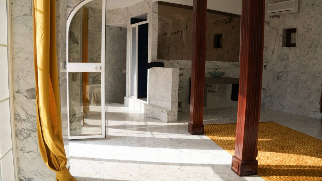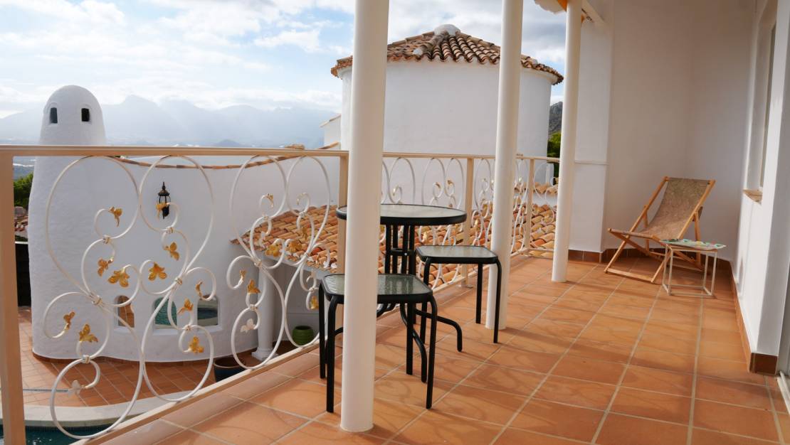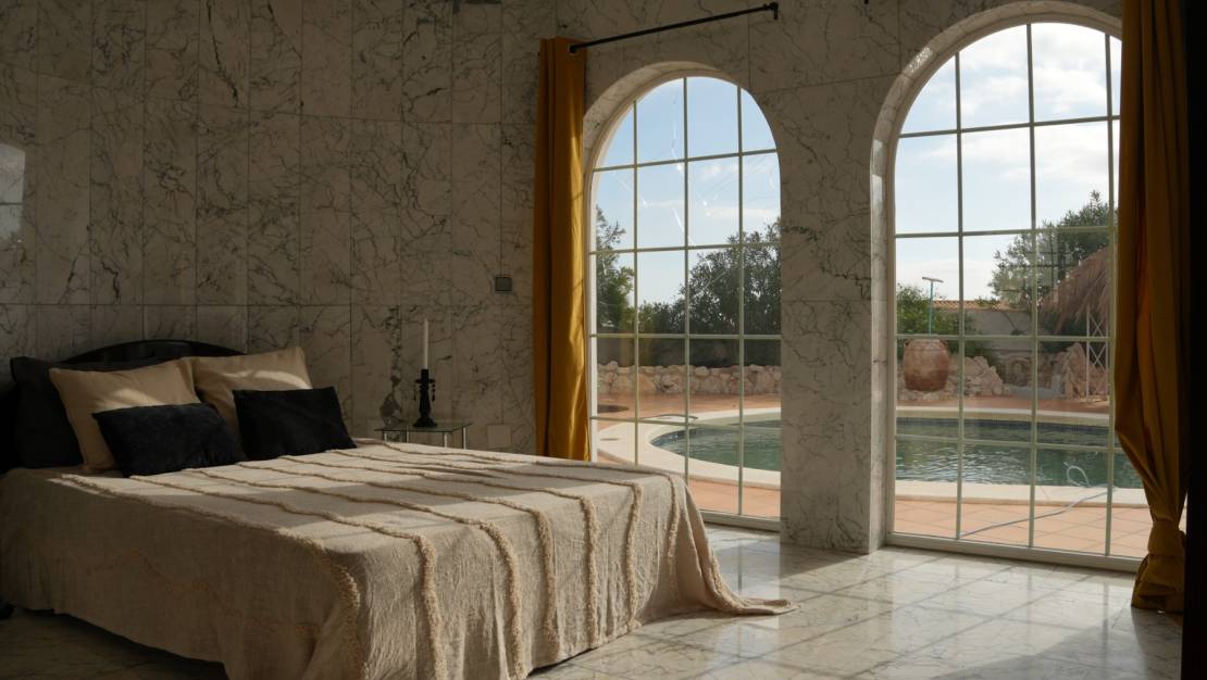 The main house also has two floors: the ground floor houses all the main rooms, while the upper floor is reserved for the master suite, with a private bathroom and a stunning terrace with spectacular views.