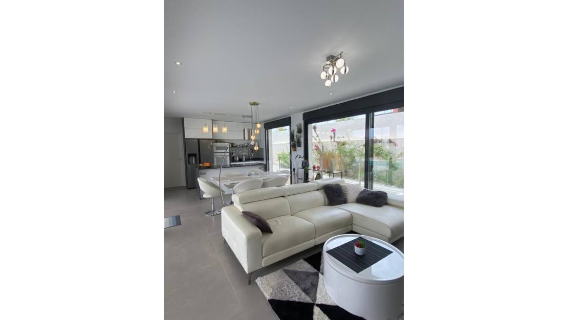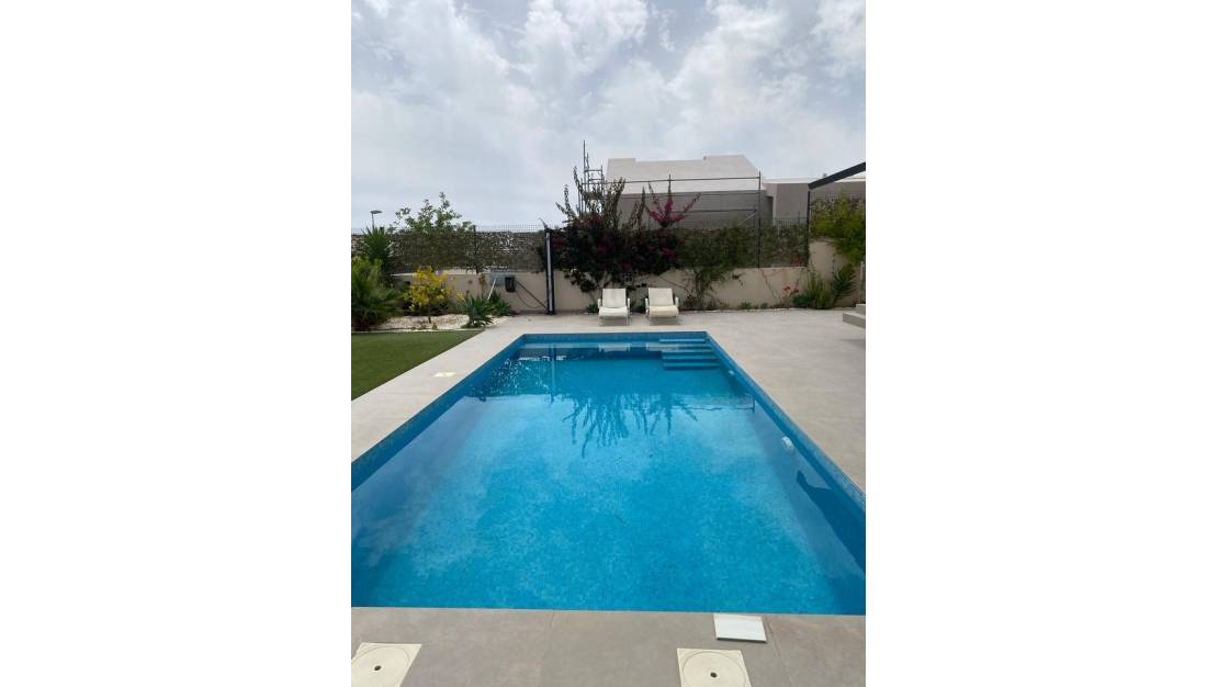 Modern 3-Bedroom Villa with Separate 2-Bedroom Apartment, Sea Views & Private Pool – Built 2022We are proud to present this stunning modern detached villa, set over two floors, with a bright and contemporary design. The property features a main 3-bedroom home and a separate 2-bedroom apartment, built in 2022. Located in a quiet and sought-after residential area, it offers easy access to shops, restaurants, beaches, and nature trails — combining privacy, comfort, and convenience.Key FeaturesSet over two floors with separate guest accommodationPrivate 30 m² swimming poolBeautifully landscaped garden with spacious terracesPanoramic sea and mountain viewsLarge 121 m² solarium with 360° views and pergolaGarage and ample driveway parkingMain LevelThe entrance hall with built-in wardrobes leads to a bright open-plan living area with a modern fully fitted kitchen and full-length bi-fold doors opening to the front terrace. The interior is flooded with natural light from floor-to-ceiling windows, creating a seamless flow between indoor and outdoor living.This level also includes:A luxurious master suite with sliding doors to the pool terrace, sea and garden views, a walk-in wardrobe, and a large en-suite bathroom.A second double bedroom with built-in wardrobes and terrace access.A third bedroom, second bathroom, and utility area.Guest Apartment (Lower Level)The lower floor features a self-contained 2-bedroom apartment with its own private entrance — ideal for guests, extended family, or rental use. It includes:Two bright bedrooms with built-in wardrobes and patio accessAn open-plan living room with kitchenPrivate patio terrace and large garageOutdoor LivingThe villa offers extensive wrap-around terraces, a BBQ area with water and electric connections (ideal for an outdoor kitchen), a covered dining and lounge area, plus a separate toilet and storage space.The 121 m² rooftop solarium spans the entire floor plan and provides spectacular 360° panoramic views — including the Mediterranean Sea, Calpe Rock, Altea Hills, and the Sierra Bernia and Sierra Aitana mountains. With water and electricity connections, it’s perfect for alfresco dining, entertaining, or relaxing.Additional FeaturesFully fitted modern kitchen with appliancesHigh-quality finishes throughoutFully tiled bathroomsDucted air conditioningBuilt-in wardrobesLocationSituated in a peaceful residential area yet close to local towns, Norwegian and British schools, golf courses, and the La Nucía sports centre, this villa enjoys an ideal location. The beach resorts of Albir, Altea, and Benidorm are just a short drive away, and Alicante Airport is approximately 30 minutes by car.SummaryThis modern 5-bedroom villa set over two floors offers versatile living with a separate guest apartment, large pool, and stunning sea views. Perfect as a luxury family home or holiday retreat, it combines elegant design, high-quality finishes, and outstanding outdoor spaces in one of the Costa Blanca’s most desirable locations.Early viewing is highly recommended.