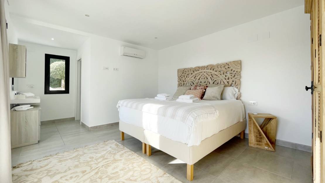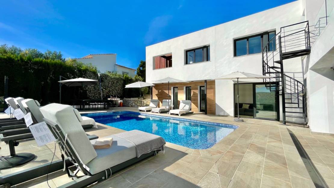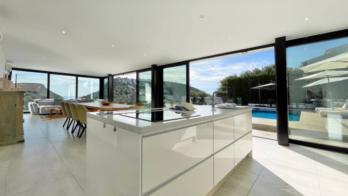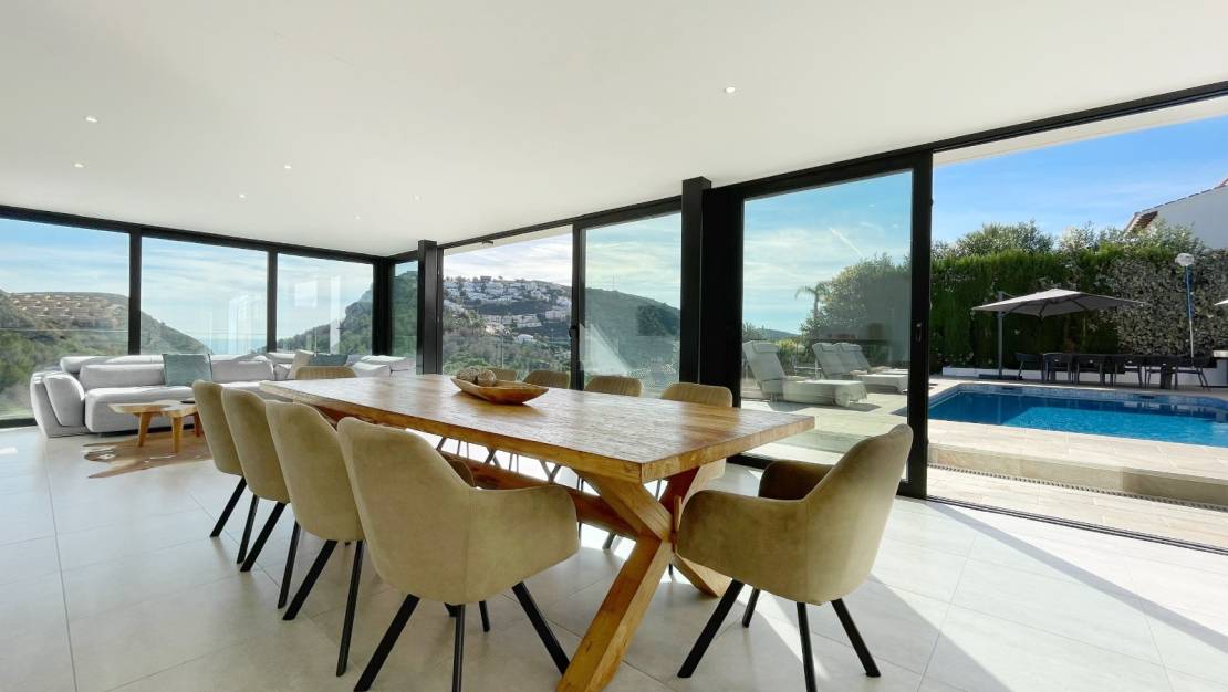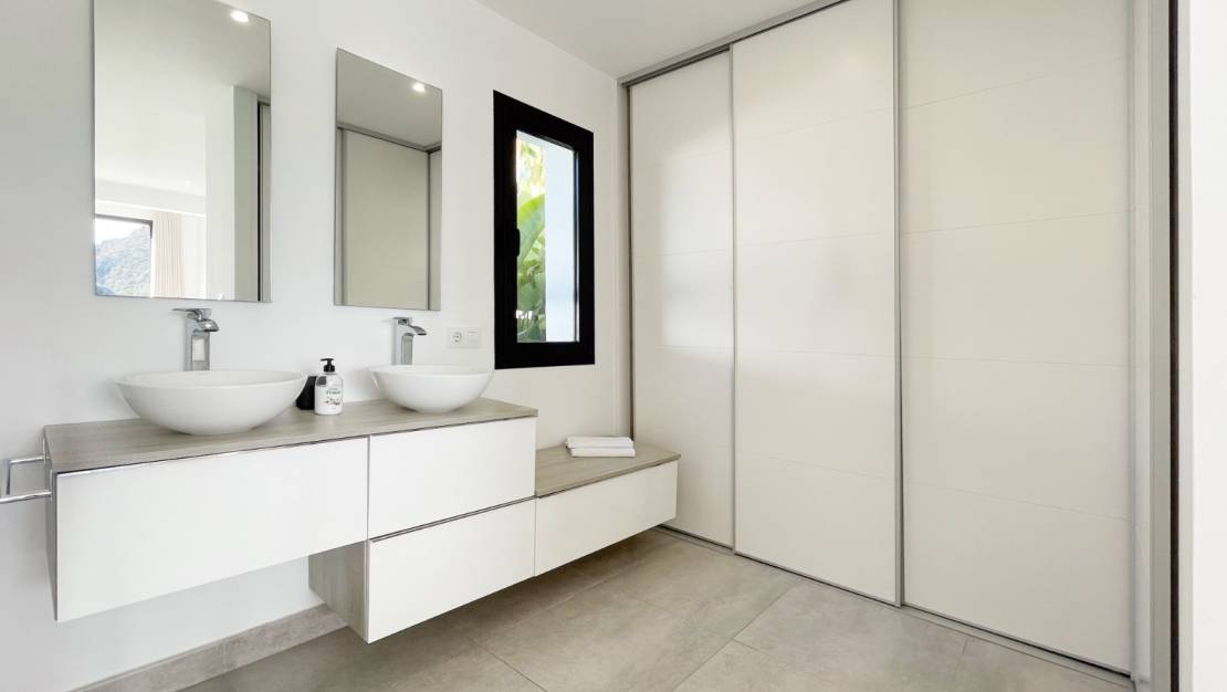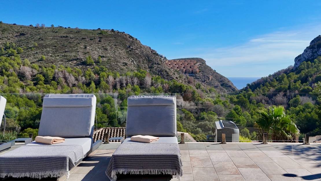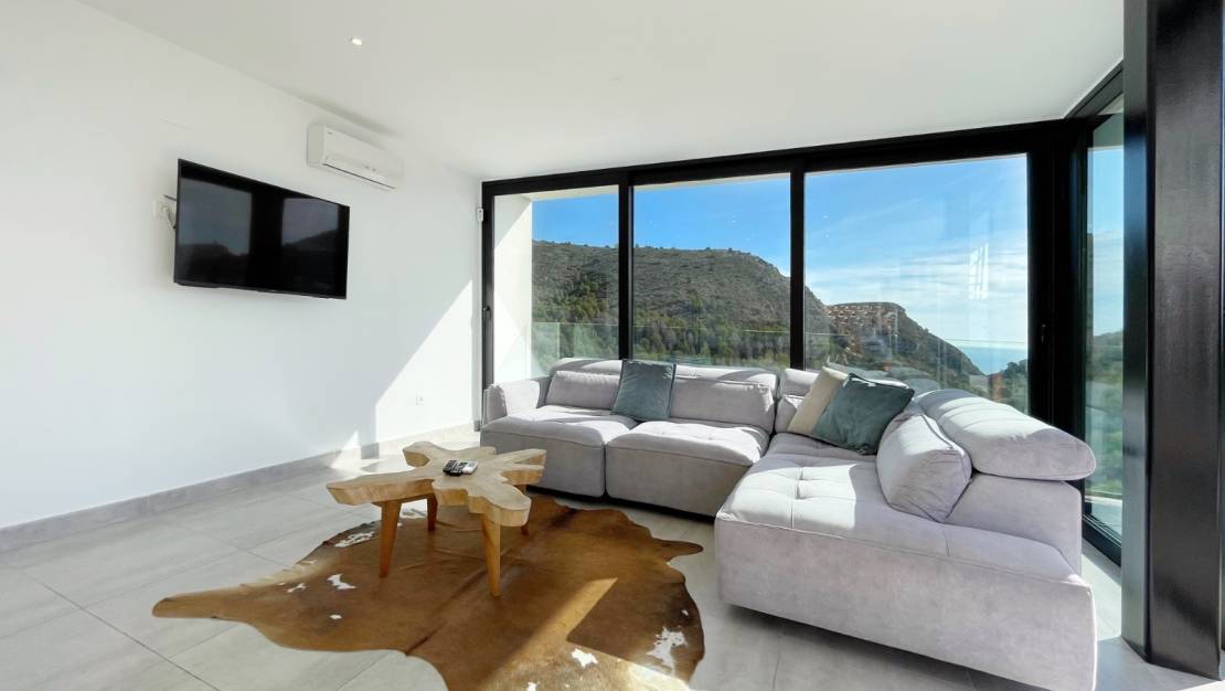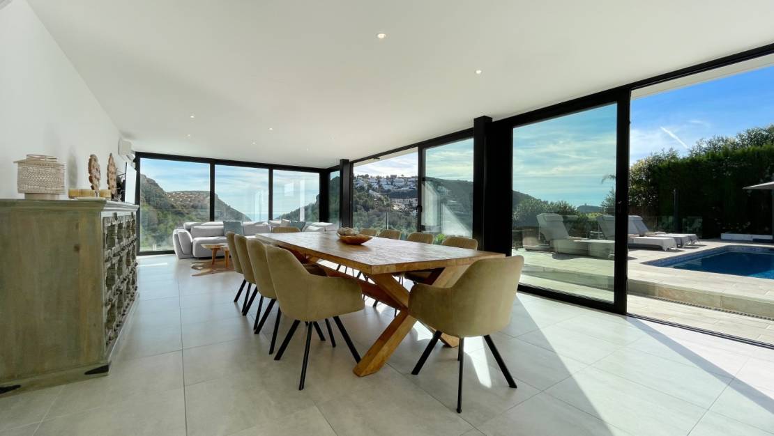 Discover this modern villa for sale in Moraira, situated in an ideal location with beautiful views over the valley, the sea and the bay of El Portet. The property combines modern design with optimal living comfort. Ideal for those looking for a spacious home on the Costa Blanca. The property has four spacious bedrooms and four modern bathrooms, spread over two floors.