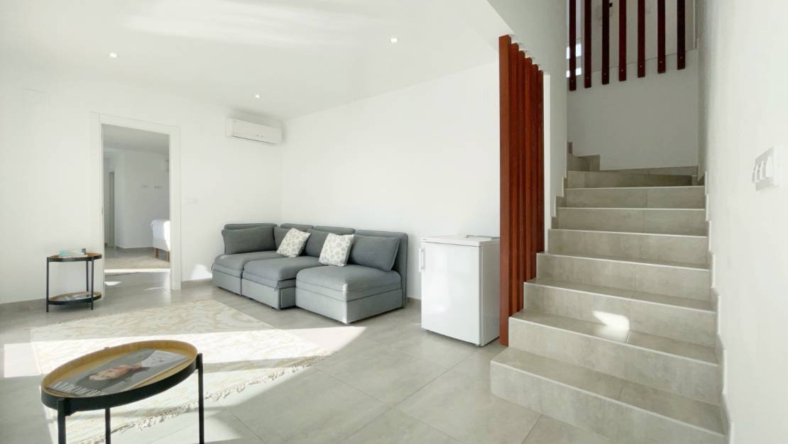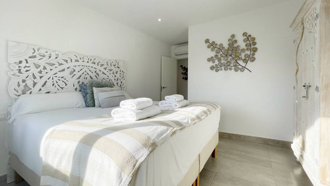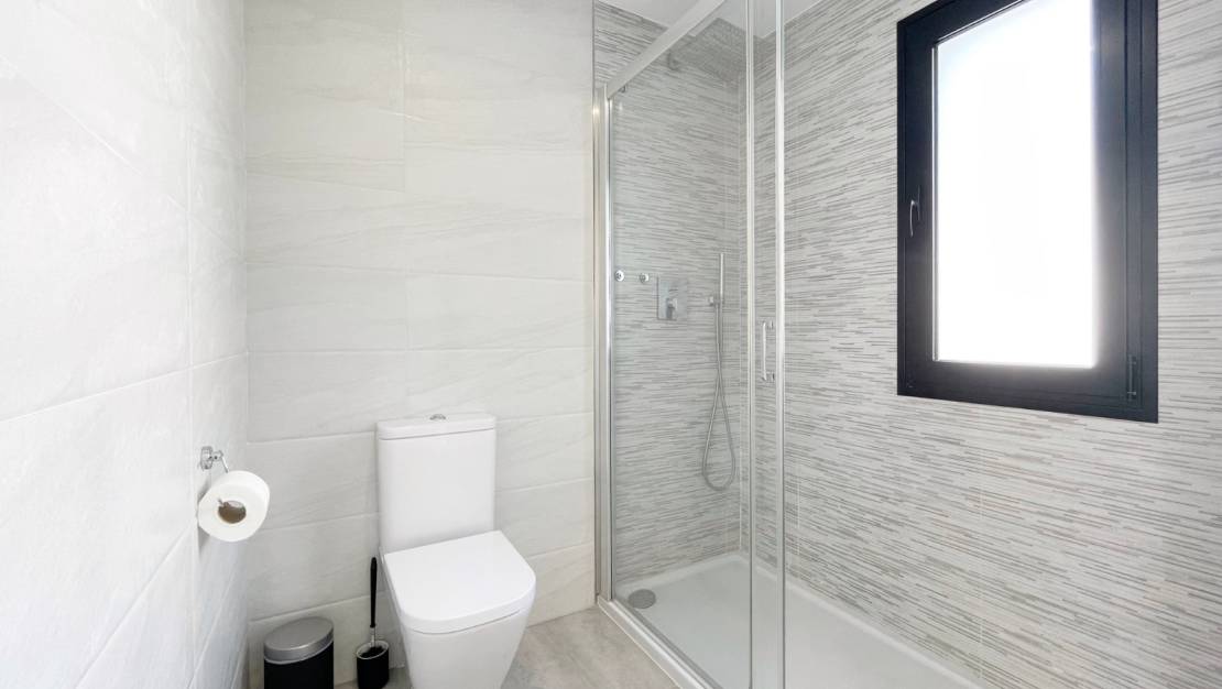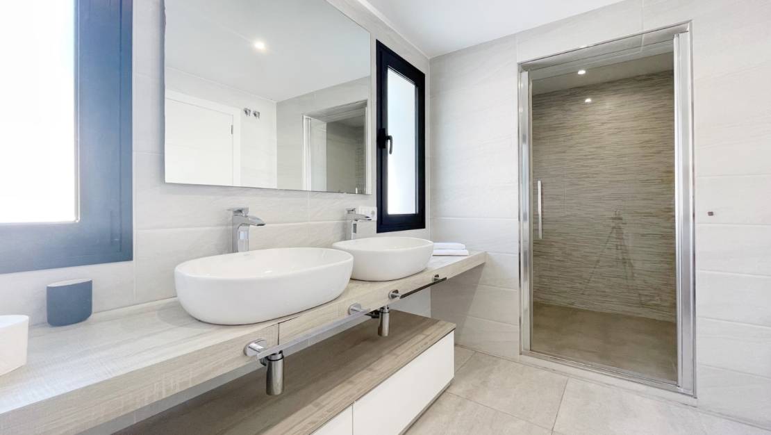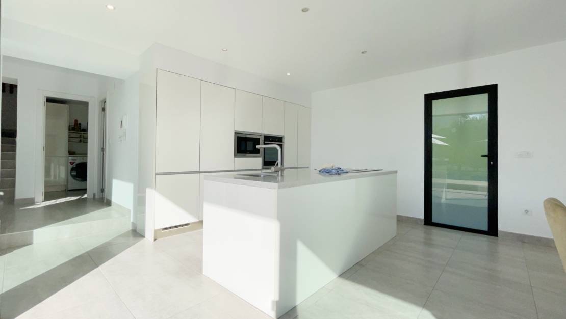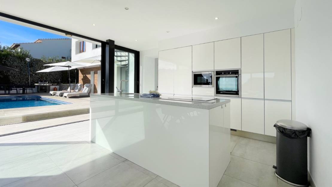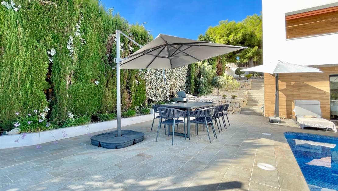 A spacious sun terrace with private swimming pool offers the perfect place to relax and enjoy the wonderful climate of the Costa Blanca. The pool has heating and an outdoor shower, so you can swim comfortably all year round. There is also a cosy barbecue area, ideal for outdoor dinners with sea views. The garden is low-maintenance, ensuring a sleek and well-kept appearance. In addition, the plot offers ample parking space and a lockable carport.