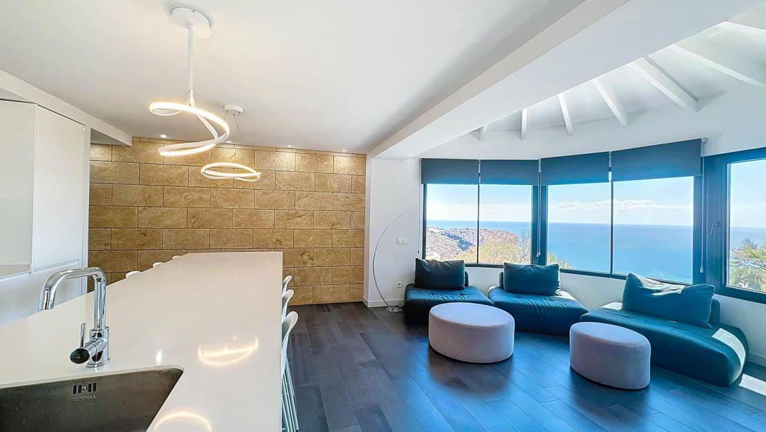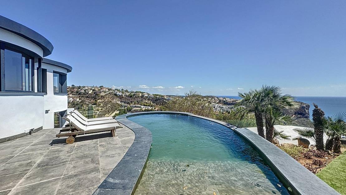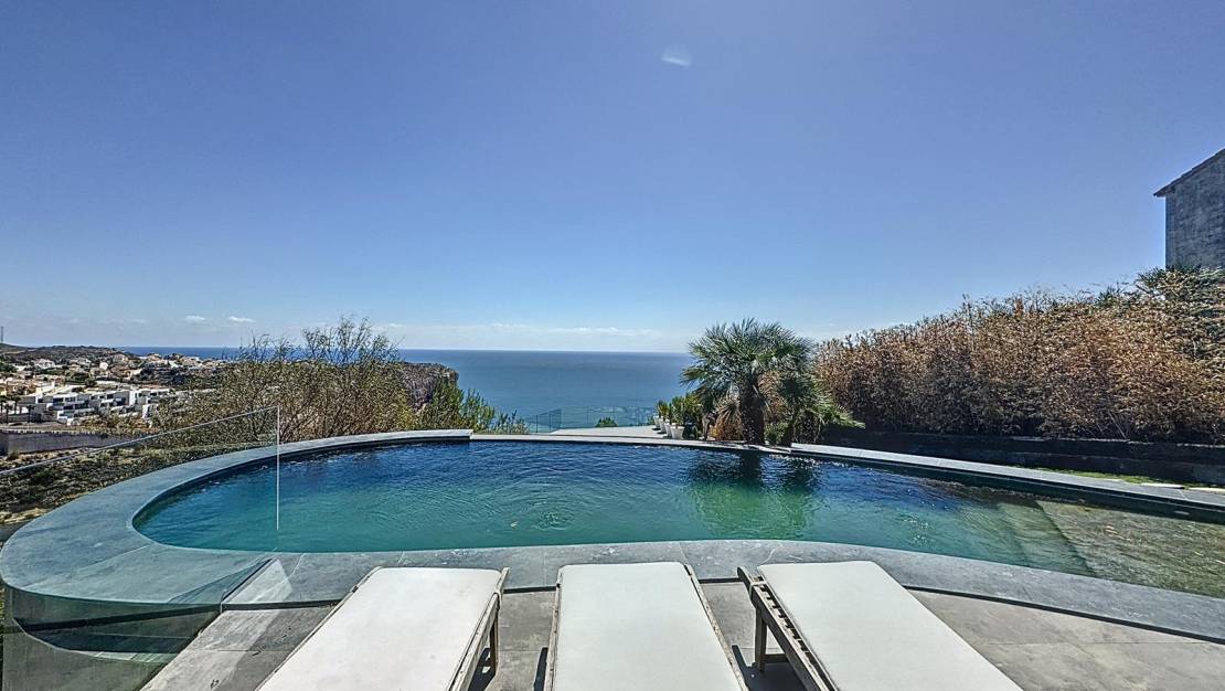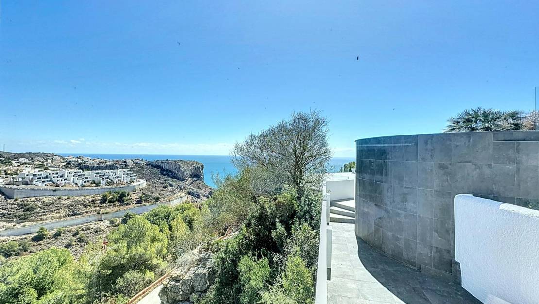 We present a magnificent refurbished villa in the exclusive residential area of Camelias, within the prestigious Cumbre del Sol residential development, located between the charming towns of Jávea and Moraira, in the municipality of Benitachell. This impressive villa has a constructed area of 163 m² distributed over two floors on a large plot of 1113 m². The property is complemented by several terraces totalling approximately 80 m², offering multiple spaces to enjoy the wonderful Mediterranean climate. The villa has three large double bedrooms, two elegant bathrooms, a guest toilet and a practical storage room. The modern open-plan kitchen integrates perfectly with the living-dining room, creating an open-plan and cosy space, ideal for family and friends gatherings. One of the highlights of this property are its spectacular sea views, where the imposing cliffs merge with the blue horizon, providing an incomparable sense of peace and serenity. Natural light floods every corner of the villa, creating a warm and bright atmosphere in every room. The private pool area, surrounded by a large terrace, integrates in perfect harmony with the exquisite garden, offering an oasis of tranquillity with breathtaking panoramic views. This is the perfect place to relax, soak up the sun and enjoy the beautiful surroundings. This villa is a unique opportunity for those looking for a luxury property in an unbeatable location. Don't miss the opportunity to live in this Mediterranean paradise, contact us today for more information and to arrange a viewing! Cumbre del Sol, where your dreams of seafront living come true. Just 1 to 3 kilometres away, you will find a full range of services to make the most of your day-to-day life: Beaches and coves: access to the Moraig, Cala dels Testos and Cala Llebeig covesLeisure and restaurants: the exclusive Dreamsea Mediterranean Camp with bar and restaurant, as well as the La Cumbre restaurant and other bars and cafésDaily services: the Adelfas Shopping Centre, with the Pepe La Sal supermarket, hairdresser, maintenance and rental agency, pharmacy and moreSports facilities: paddle tennis and tennis courts, gym and equestrian centre nearbyEducational centres: the prestigious Lady Elizabeth School, just a few steps awayOther supermarkets and shops: Mas y Mas, Mercadona and shops in the town centre of BenitachellGolf and leisure: Jávea golf course, just 4-5 km awayIn addition, within a radius of 7 to 11 km, you can enjoy the charming beaches of Portet de Moraira and Arenal de Jávea, ideal for relaxing or practising water sports. Are you looking for a place to build your dream home or invest in a high-value property? The Dalias Residential Area offers everything you need: natural surroundings, security, unbeatable views, quality services and a peaceful international community. Contact us today and take the first step towards becoming part of this exclusive enclave in the heart of the Costa Blanca.