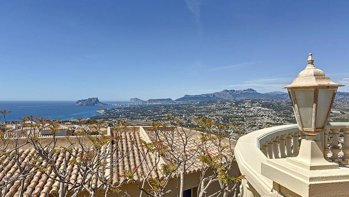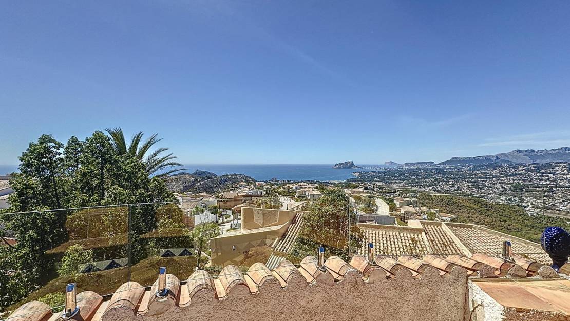 Spacious Villa with Spectacular Sea Views in Kalmias, Cumbre del Sol Welcome to the Cumbre del Sol residential development, where we present a real estate gem located in the prestigious residential area of Kalmias, between Jávea and Moraira, in the charming municipality of Benitachell. This spacious villa offers an unrivalled living experience with panoramic views of the Mediterranean Sea, highlighting the imposing Peñon de Ifach on the horizon. Property features: Built Area: 301 m² Plot: 1007 m² Distribution over several floors Spectacular sea views On the main floor, we find a spacious and bright living-dining room that opens onto a covered terrace, from which you can access the private pool terrace. The modern and fully equipped eat-in kitchen is perfect for enjoying pleasant culinary moments. On this floor there is also a guest toilet, a complete bathroom and a bedroom. The reading area on this floor leads us to the upper floor, where we find the majestic master bedroom, which acts as a private veranda with its own en-suite bathroom, offering unparalleled views of the sea. On the basement level, we discover an additional bathroom, several multi-functional rooms and an entertainment room equipped with an elegant bar and access to a charming wine cellar. This room also has access from the outside, where there is a terrace integrated into the garden, adorned with a beautiful pergola that provides pleasant shade during sunny days. Additional details: Garage: Space for one vehicle Garden: Several areas of enjoyment in a landscaped environment with great attention to detail. Private pool: Perfect for enjoying the Mediterranean climate. This villa represents a unique opportunity to live in one of the most sought after areas of the Costa Blanca, combining luxury, comfort and a privileged location. Don't miss this opportunity to acquire a property that offers the best of Mediterranean living. For more information and viewings, please do not hesitate to contact us, we look forward to seeing you at Cumbre del Sol!