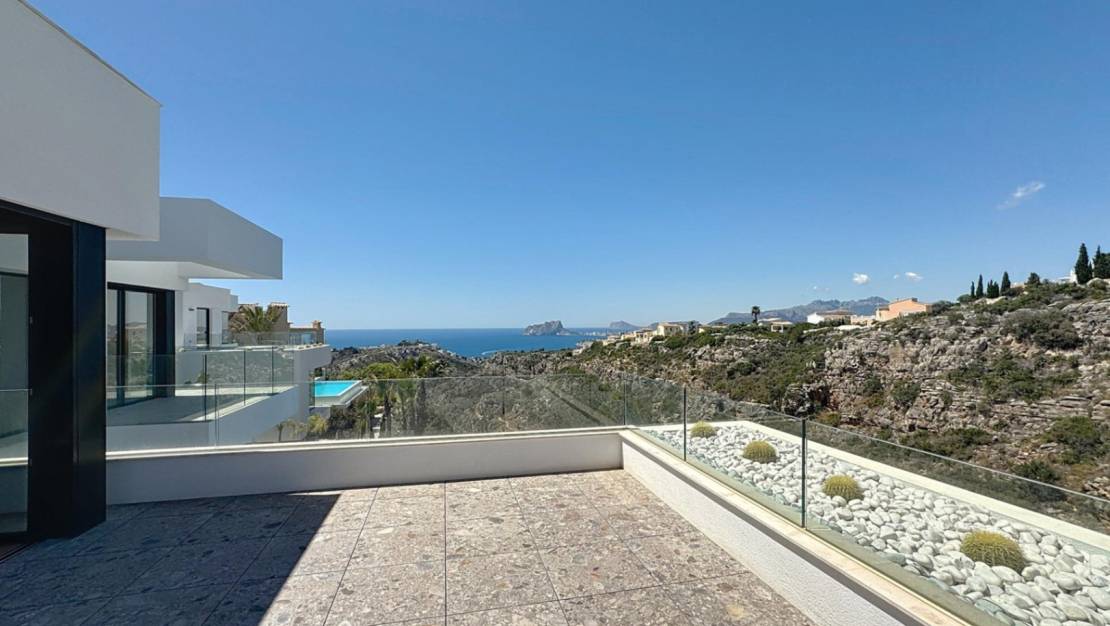 Brand new luxury villa with contemporary design and spectacular views of the sea, the Moraira valley and the Peñón de Ifach in Calpe This elegant villa is located in the Magnolias residential area, within the prestigious Cumbre del Sol urbanisation, strategically located between Jávea and Moraira, in the charming municipality of Benitachell. A privileged location offering privacy, tranquillity and unrivalled natural surroundings. With a total constructed area of 441 m², this magnificent property is distributed over 240 m² of main living space, 45 m² of basement, 4 m² of technical room and 153 m² of outdoor terraces, ideal for enjoying the Mediterranean climate and panoramic views. The villa offers three double bedrooms, all with built-in wardrobes or dressing rooms and their own en-suite bathrooms, ensuring comfort and privacy. Two of the bedrooms have their own private terrace and sea views, creating an exclusive and relaxing atmosphere. An elegant internal staircase leads to the main floor, where we find a spacious living-dining room with a fireplace, a modern open-plan kitchen with a dining area, a guest toilet and a separate utility room. Both the living room and the kitchen offer direct access to the outdoor terrace with a private swimming pool, a perfect space for relaxing or entertaining guests while enjoying the stunning views of the Mediterranean. In the basement, the property has a versatile open-plan space, ideal for creating a leisure area, gym, home cinema or a separate guest apartment. The property is located on a 1,100 m² plot, surrounded by a well-kept Mediterranean-style garden with palm trees, fruit trees and native vegetation, providing a natural, peaceful and very private setting. Built with top quality materials, this villa includes indoor and outdoor LED lighting, underfloor heating and an efficient ducted air conditioning system throughout the property, offering maximum comfort all year round. An exclusive property in a privileged location, ideal both as a permanent residence or as an investment in one of the most sought-after areas of the Costa Blanca. Discover the luxury and exclusivity of Magnolias Residential Estate in Cumbre del Sol, Benitachell In the coveted Cumbre del Sol residential development, in the heart of the Costa Blanca, you will find Residencial Magnolias, a prestigious area of villas designed to offer a unique lifestyle, where luxury and comfort blend with the beauty of the natural surroundings. Residencial Magnolias has 196 plots of between 750 and 1,200 m², carefully designed to blend in harmoniously with the Mediterranean landscape and make the most of the stunning sea views. Each plot is strategically orientated to the east, south or west, guaranteeing exceptional natural light and spectacular views of the Mediterranean. Located in the southern area of Cumbre del Sol, Magnolias enjoys a privileged position, bordering the exclusive residential areas of Kalmias, Lirios and Palmeras. In addition, its proximity to the southern entrance of the development ensures easy access and an unbeatable location within this distinguished community. Nearby amenities for a full and active life The location of Magnolias not only stands out for its tranquillity and incomparable views, but also for its proximity to essential services and leisure facilities that make this area an ideal place to live: 1 or 2 kilometres away :Dreamsea Mediterranean Camp, with a relaxed atmosphere, bar, restaurant and direct access to the lovely Morach beach and the picturesque coves of Los Tiestos and Llebeig.3 to 4 kilometres away:Adelfas shopping centre , which includes:Pepe la Sal supermarket .Hairdresser and maintenance and rental agency.Restaurants such as the cafeteria bar and the well-known La Cumbre.Chemist.Sports facilities for paddle tennis and tennis, a sports centre with bar and the prestigious international Lady Elizabeth School.Mercadona supermarket, with fresh, quality products.6 to 8 kilometres away:Mas y Mas supermarket.Benitachell town centre.The charming beach of El Portet de Moraira.The exclusive golf course of Jávea.13 kilometres away:The famous Arenal beach in Jávea, with its vibrant promenade, first class restaurants and varied leisure offer.A place to enjoy life to the full Living in Residencial Magnolias means waking up every day surrounded by the serenity and beauty of the Mediterranean, without giving up the comfort of having everything you need at your fingertips. From relaxing walks on the beach to access to exclusive services, this is a unique opportunity for those looking for a residence that combines luxury, nature and comfort. Are you ready to take the step towards an exceptional life? We invite you to get to know Residencial Magnolias and discover why this community is the ideal place for your new home on the Costa Blanca. Contact us today and let us help you find the villa of your dreams. At Cumbre del Sol Pre-Owned, we are committed to making your wishes come true.
