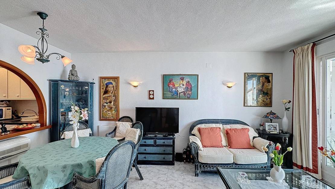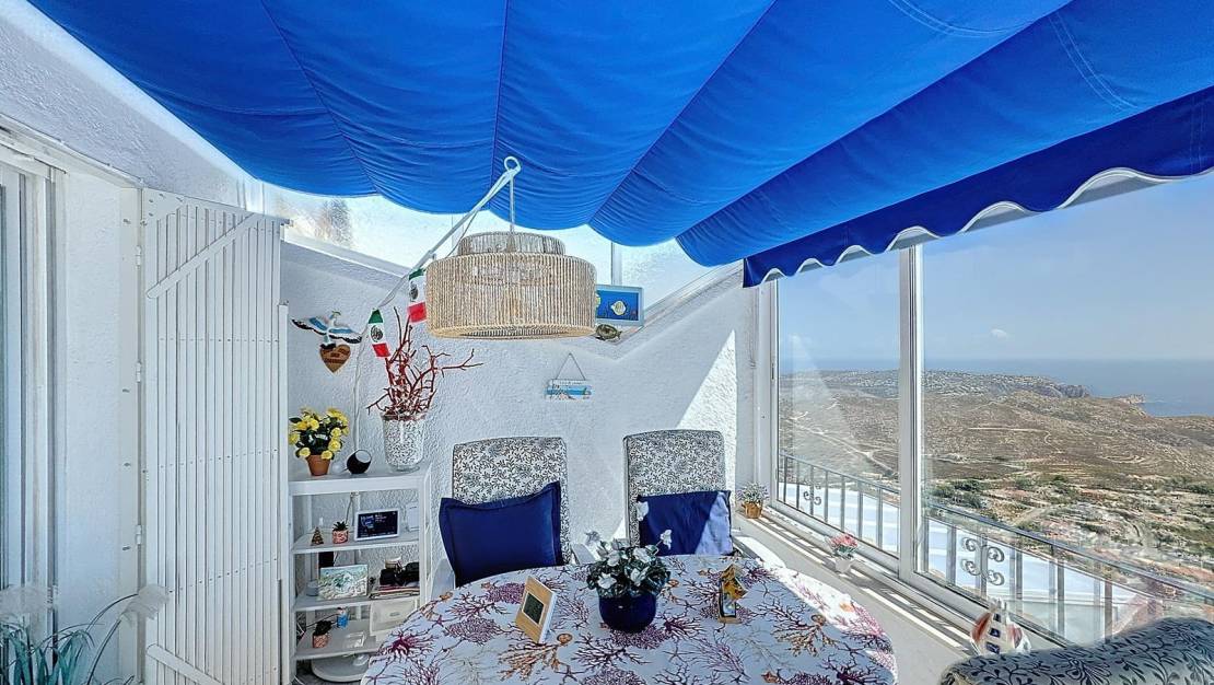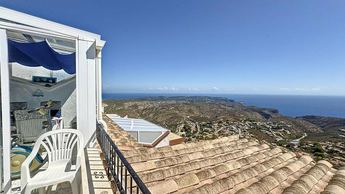 Top floor apartment with spectacular sea views in Pueblo Panorama, Cumbre del Sol (Benitachell)A home with the Mediterranean at your feetDiscover this charming top floor apartment with truly impressive panoramic sea views, located in the exclusive Pueblo Panorama development, within the prestigious Cumbre del Sol residential complex, between Jávea and Moraira, in the municipality of Benitachell. With a total built area of 89 m², this flat offers 69 m² of living space plus a partially covered terrace of 20 m², perfect for enjoying the Mediterranean climate all year round. It also has a private storage room of around 5 m², ideal for additional storage. Layout and featuresThe apartment has a functional and comfortable design, making the most of natural light and sea views: Two double bedrooms with fitted wardrobes.Full bathroom with window, bright and airy.Guest toilet, also with window.Spacious living-dining room with open-plan kitchen, ideal for enjoying with family or friends.Partially covered terrace, with enough space for a table and relaxation area.From the terrace, the living room and the bedrooms, you can enjoy unbeatable views of the Mediterranean Sea, the Granadella Natural Park, the Cabo de la Nao and, on clear days, even the island of Ibiza can be seen on the horizon. Without a doubt, this is a place where every sunrise and sunset becomes a spectacle. Enjoy life in Pueblo PanoramaLiving in Pueblo Panorama means enjoying a privileged location, surrounded by nature, tranquillity and all the amenities of Cumbre del Sol. The residential complex has 8 communal swimming pools distributed in four different locations, with large terraces for sunbathing and contemplating the sea. In the surrounding area you will find: Lady Elisabeth International School, just 1 km away.The beaches of Moraig and Cala de los Tiestos, 2-3 km away.Adelfas Shopping Centre, with a supermarket, restaurant, pharmacy and hairdresser.Sports areas, horse riding, paddle tennis and tennis courts, ideal for keeping active.Just 7 km away is the town centre and the beaches of Moraira, and 11 km away is the famous Arenal Beach in Jávea.A perfect environment both for year-round living and for enjoying unforgettable holidays. Contact usIf you can imagine yourself having breakfast by the sea, breathing in the calm and enjoying the incomparable light, this apartment in Pueblo Panorama is your opportunity. Contact us today and we will help you visit your new home on the northern Costa Blanca. Pueblo Panorama Residential Area – Cumbre del SolPueblo Panorama is part of the Dalias residential area, within the Cumbre del Sol development, in Benitachell (Alicante). It is a highly sought-after development thanks to its south-east orientation, spectacular views of the Mediterranean and typical Mediterranean architecture. With eight communal swimming pools, extensive gardens and a strategic location between Jávea and Moraira, it is one of the most sought-after areas of Cumbre del Sol. Its residents enjoy the tranquillity of a protected natural environment, together with the convenience of having all essential services — international school, supermarkets, restaurants and beaches — just a few minutes away.