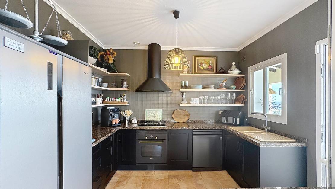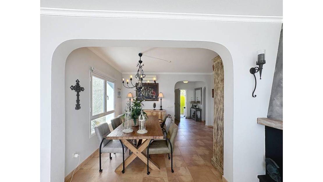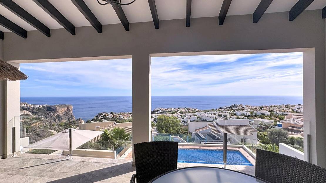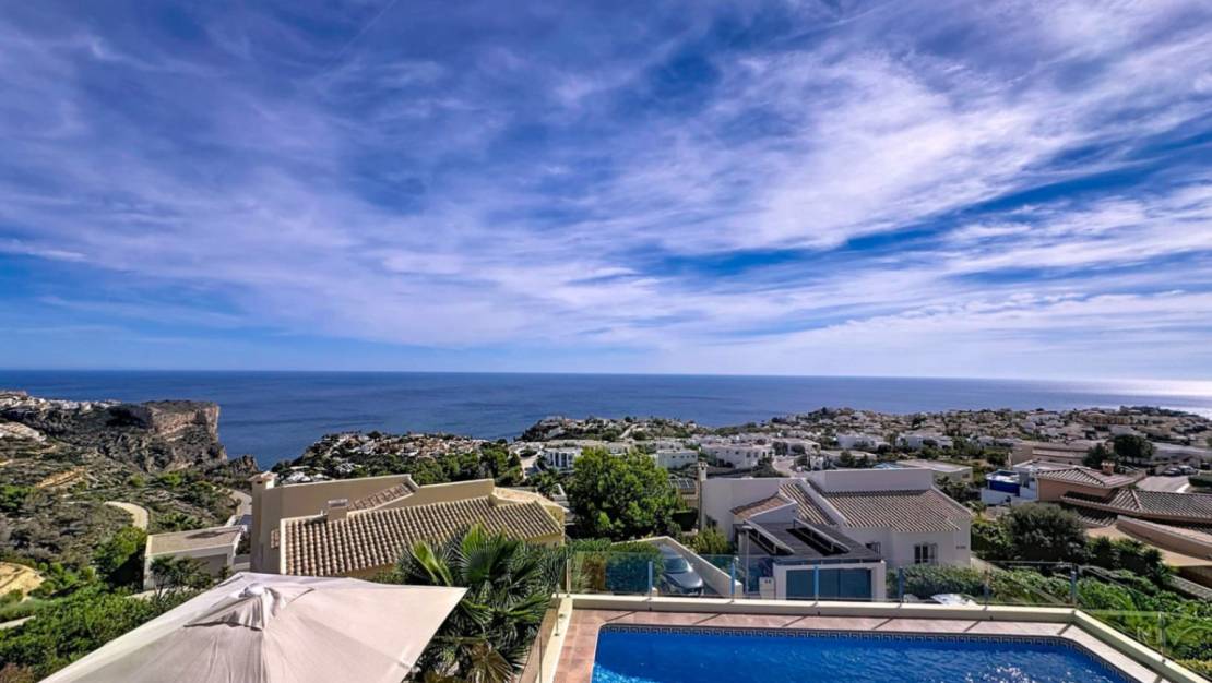 Spectacular Mediterranean villa with panoramic sea views in Cumbre del SolA unique property with Mediterranean charmThis exclusive Mediterranean-style villa stands imposingly on an 803 m² plot in the Lirios residential area, within the prestigious Cumbre del Sol development, in the municipality of Benitachell, between Jávea and Moraira. From its elevated position, it offers stunning panoramic views of the sea, Cabo de la Nao, the island of Ibiza on the horizon and the Torre Vigía del Portet de Moraira. The property has a total built area of approximately 340 m², distributed over two floors, combining elegance, comfort and a design geared towards enjoying the natural surroundings. Interior layout designed for comfortMain floorThe main floor has a spacious and functional layout: Two double bedrooms with fitted wardrobes, one of which has sea views.Full bathroom and laundry room with window.Master bedroom with en-suite bathroom, dressing room and direct access to the terrace.Open-plan kitchen opening onto the dining room, with direct access to the covered terrace with sea views.Living room with fireplace, divided into two areas: a television area and another designed as a panoramic viewpoint from which you can see Cabo de la Nao, Ibiza and the Torre del Portet.Ground floorAn external staircase leads to the ground floor, where you will find the pool terrace and a cosy guest area: Living room opening onto the terrace.Summer kitchen, ideal for enjoying by the pool.Two double bedrooms and a spacious full bathroom.Technical room and storage room for added functionality.Details that make the differenceThis villa stands out for its impeccable condition and for being equipped with: Underfloor heating.Split air conditioning in all rooms.Mediterranean garden with different relaxation areas, including a chill-out area with barbecue.Every corner of the house is designed to enjoy the stunning sea views and the Mediterranean lifestyle, in a peaceful and exclusive environment. Lirios Residential Area, Cumbre del SolLocated in the heart of the Northern Costa Blanca, the Lirios Residential Area is one of the most established and sought-after areas of the Cumbre del Sol development. With 235 plots ranging from 750 to 1,200 m², this area stands out for its privacy, tranquillity and panoramic views of the Mediterranean Sea. Services and surroundingsJust a few minutes away you will find everything you need for your daily life: Beaches and coves: Cala Moraig, Cala de los Tiestos and Cala Llebeig.Adelfas Shopping Centre with Pepe La Sal supermarket, hairdresser, pharmacy and restaurants.La Cumbre Restaurant, renowned for its excellent cuisine.Sports centre with paddle tennis and tennis courts.Lady Elizabeth International School, one of the most prestigious on the Costa Blanca.Mercadona and Mas y Mas supermarkets and the town centre of Benitachell just a few minutes away.The east-southeast orientation of the area guarantees spectacular sunrises and exceptional natural light throughout the year, making it an ideal setting to live or enjoy unforgettable holidays. Live the Mediterranean lifestyle you deserveIf you are looking for a charming villa with endless views and maximum privacy, this property in Residencial Lirios, Cumbre del Sol, is a unique opportunity. Contact us today to arrange a viewing and discover why this villa is much more than just a house: it is a place where you can experience the authentic spirit of the Mediterranean. About the Cumbre del Sol developmentCumbre del Sol is one of the most exclusive developments on the northern Costa Blanca, located in the municipality of Benitachell, between Jávea and Moraira. Its privileged location on the cliffs offers some of the most spectacular views of the Mediterranean, alongside protected natural areas, paradisiacal coves and a wide range of high-quality services and leisure activities. With its mild climate, tranquillity and international community, it is the perfect place for those seeking luxury, nature and well-being all year round.