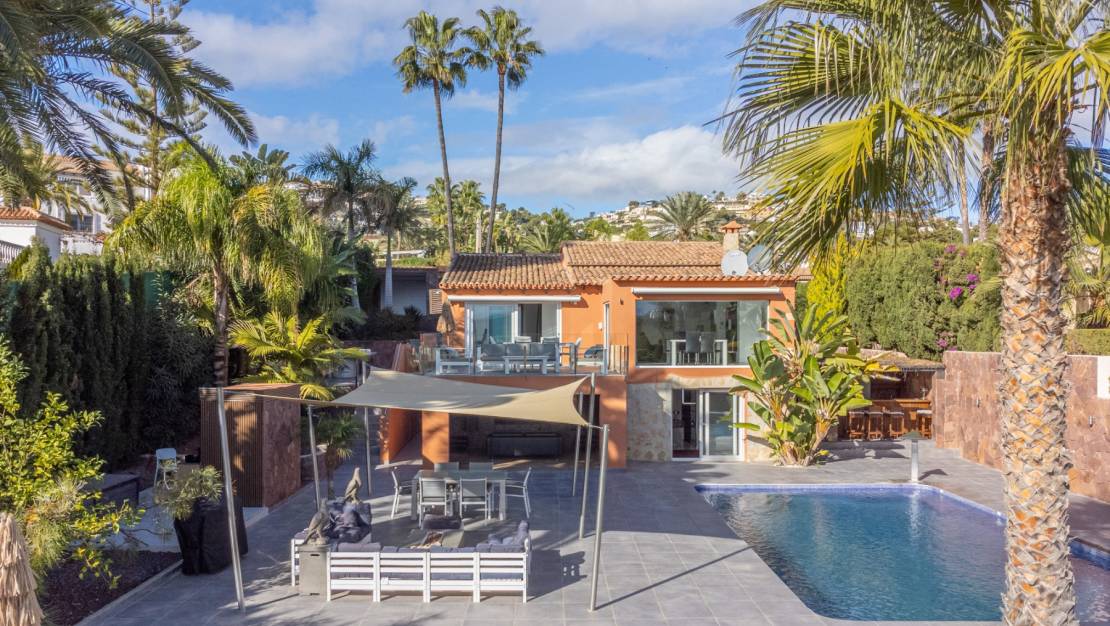 This beautifully modernised villa is located in a quiet and green area in the Benimeit district of Moraira – an ideal choice for anyone looking for a villa in Moraira with privacy, comfort and the real Mediterranean outdoor life. Thanks to its recent renovation, stylish outdoor areas and independent guest suite, this is a very attractive property located about 2 km from the lively centre of Moraira.