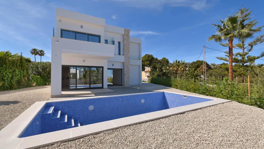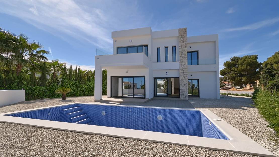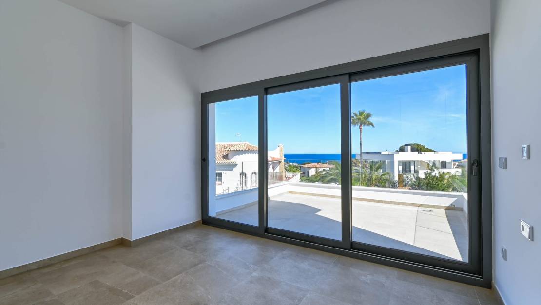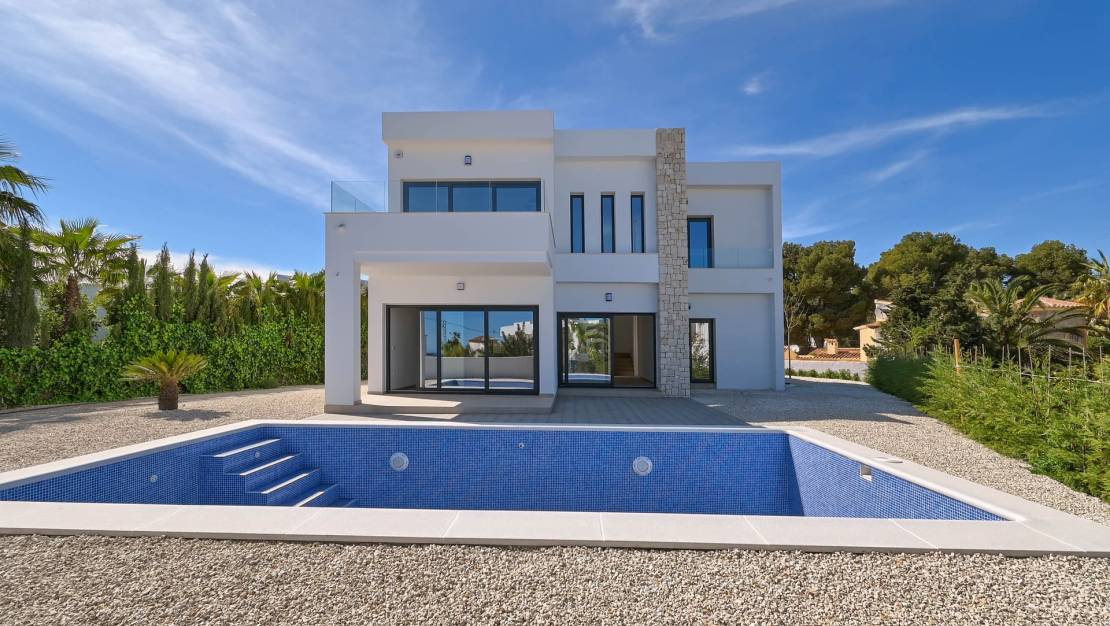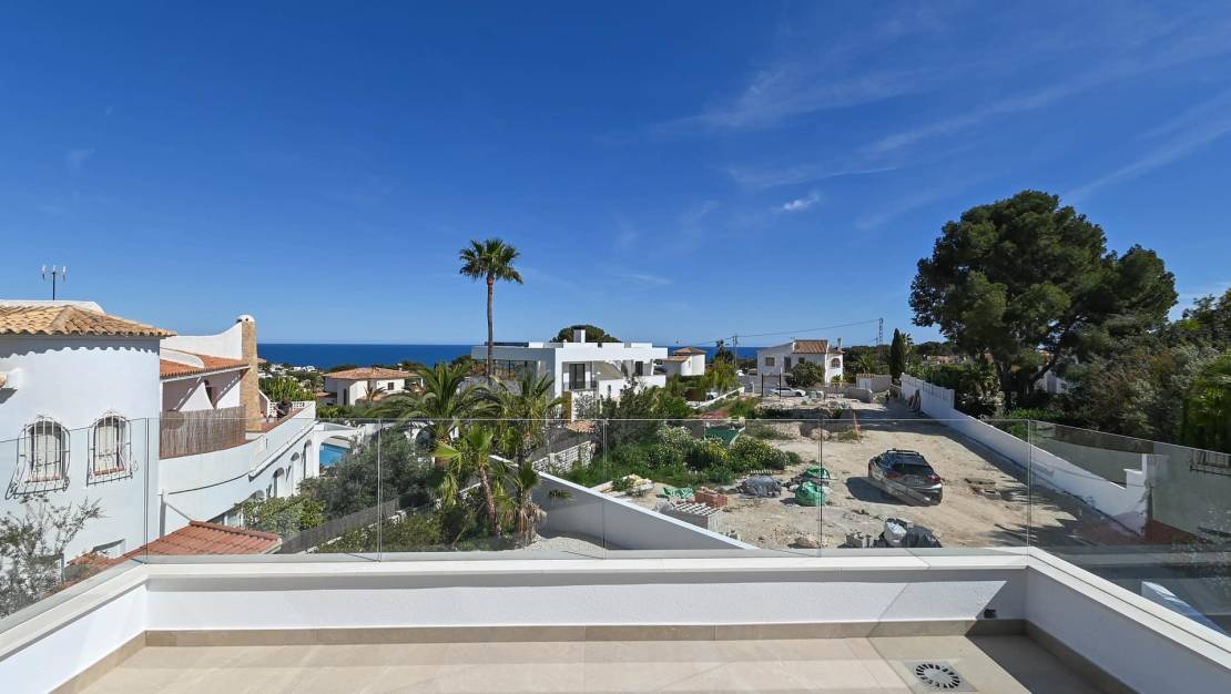 Brand New, Sea View Villa Benissa Costa Modern Villa with Sea Views & Spacious Outdoor Living This stylish new-build villa offers contemporary design, comfortable living spaces, and a seamless connection to the outdoors. With high ceilings, plenty of natural light, and energy-efficient features—including underfloor heating via a renewable energy heat pump and integrated air conditioning—this home is designed for modern living. A private driveway leads to the entrance, where the property offers a secure garage with an electric door for one vehicle and a carport with additional parking. The open-plan living and dining area feels bright and spacious, thanks to large windows and a double-height ceiling. The living area flows naturally onto the outdoor terrace, where a partially covered lounge and dining space overlook the 8x4m swimming pool—perfect for relaxing or entertaining. A modern, fully equipped kitchen with a central island sits next to the dining area, creating a practical and inviting space. On the main level, there is a double bedroom with built-in wardrobes and direct access to the terrace, as well as a large bathroom. A laundry/storage area is conveniently located under the staircase. Upstairs, a mezzanine landing adds to the home’s open feel. The main bedroom features an en-suite bathroom, built-in wardrobes, and access to a private 11.7 m² terrace with lovely sea views—an ideal spot to enjoy your morning coffee. A second double bedroom also enjoys sea views and has access to a small balcony. A second bathroom completes this level. The outdoor space is generous, with a 900 m² rustic garden at the back, perfect for families, pets, or additional landscaping possibilities. The front garden is easy to maintain, with hedges, shrubs, and palm trees. There’s also a barbecue area and plenty of space for outdoor dining and relaxing by the pool. Offering modern comfort in a peaceful setting, this villa is ideal as a family home or an investment opportunity. If you wish to schedule a private viewing of this stunning Sea View Villa in Benissa, Costa, please contact us today!