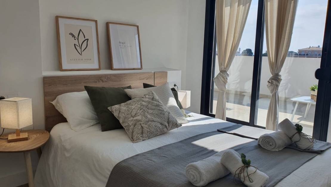 The property is distributed on a single floor and features four large bedrooms and three bathrooms, two of which are en suite. The master bedroom stands out for its generous size and includes a dressing room and private bathroom. All bedrooms have direct access to terraces, providing a seamless connection with the outdoors and abundant natural light.