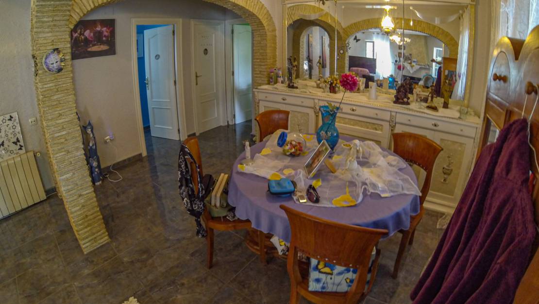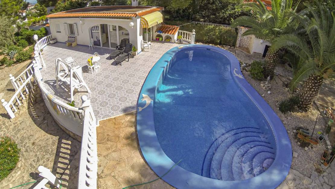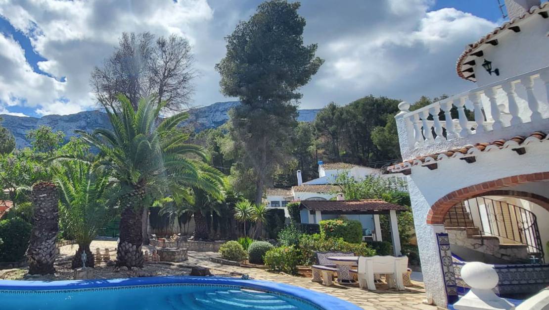 Impressive villa in one of the most quiet and pleasant areas of Denia, with stunning views of the Montgó Natural Park and sea views. The property is fully conditioned and ready to move in. The property consists of a fully furnished main house of 250m2 with gas central heating and air conditioning, with 4 bedrooms, the master bedroom with toilet, living room with fireplace, kitchen, shower room and a bathroom of about 30m2 with hydromassage cabin, a tower with a bedroom and bathroom, and a studio with shower room. There is a pool house with a kitchen, a shower room and a storage room. There is also a covered area with a barbecue, 2 benches and a table, and a garage with a pergola. It has a plot of 2700m2 with access from two streets, completely private and fenced with large well-kept gardens, a well, several terraces with greenery and a private pool. And best of all, on the plot there is the possibility of building another house of 200m2. It is located 1 km from Denia and 2 km from the sea. In total the villa has 6 bedrooms, 5 bathrooms, 2 kitchens.
