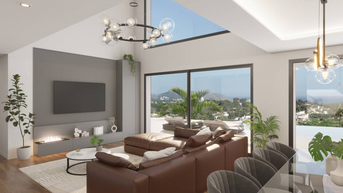 Discover luxury and comfort in this modern villa located in the prestigious El Tesoro area, Moraira! Spread over two floors, this stunning property offers contemporary design and spacious living spaces to meet the most demanding needs. On the ground floor you will find a stylish, fully equipped kitchen, ideal for foodies, along with a practical utility room. The spacious living and dining room is perfect for family gatherings and moments of relaxation. Furthermore, an en-suite bedroom is located on this floor, ensuring privacy and comfort. The garage offers extra convenience for safely parking your car. Moving upstairs, you are greeted by a luxurious suite and two additional bedrooms, both with their own shower and bath, ensuring that each family member has their own personal and comfortable space. The exterior of this villa is equally impressive, with a large terrace inviting you to enjoy the wonderful Mediterranean climate. The jewel in the crown is a 10 x 4-metre pool, perfect for cooling off while enjoying the sweeping sea views that this exclusive location offers. This modern villa in El Tesoro, Moraira, is the ideal home for those looking for a sophisticated lifestyle in a paradisiacal setting. Don't miss the opportunity to make this dream come true. This villa will be ready by mid-2025.