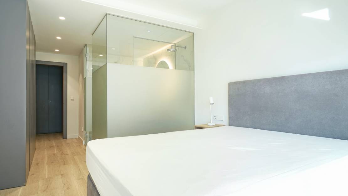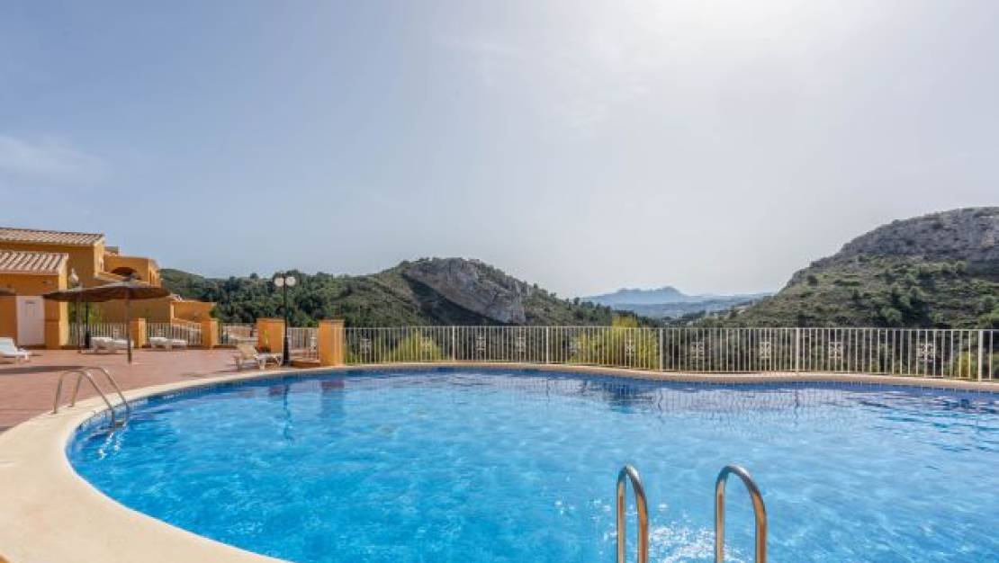 Sunny two bedroom apartment for sale in Cumbre del Sol, This modern apartment is located in the Montecala Gardens urbanization and was completed two years ago. The apartment is located on the second floor, is accessible by both stairs and elevator and has a total surface of 91 m2. You enter an entrance hall with a laundry room to the right. Walking further you will enter a modern, open kitchen equipped with all electrical appliances including a fridge-freezer, an induction hob, an oven, a microwave and a dishwasher. Adjacent is a spacious lounge from where you have direct access to the terrace through sliding windows. Next to the living room is the master bedroom with a luxurious en suite bathroom and several fitted wardrobes. Through sliding windows there is also direct access from this room to the terrace. In addition, there is a second double bedroom with fitted wardrobes and a separate bathroom. For added comfort, the apartment has two additional wardrobes, one large one in the living room and a smaller one at the entrance. Outside there is a spacious covered terrace of 23m2 with a lounge and dining area. In front of the terrace is a beautiful garden of 36 m2 with open views over the extensive nature reserve that separates Cumbre del Sol from Moraira. The natural stone wall on the east side provides you complete privacy from your neighbours while the southern-west orientation guarantees you will be able to enjoy the sun all year round. The apartment is equipped with the latest technology including underfloor heating, air conditioning, electric shutters and electric blinds. The furniture can be purchased separately for 15,000 euros. The Monte Cala Gardens urbanization has two beautiful swimming pools and covered parking right in front of your home. The idyllic beach of Cala Llebeig can be reached on foot. Moraira town center and the beach are just a 10-minute drive away but can also be reached on foot via a walking trail through the natural park. Cumbre del Sol has several facilities including a supermarket, a pharmacy, a restaurant, a tennis club, an international school, etc. Several large supermarkets and restaurants can be reached within a 5-minute drive. Don't hesitate any longer and request your visit now! Video available on request.