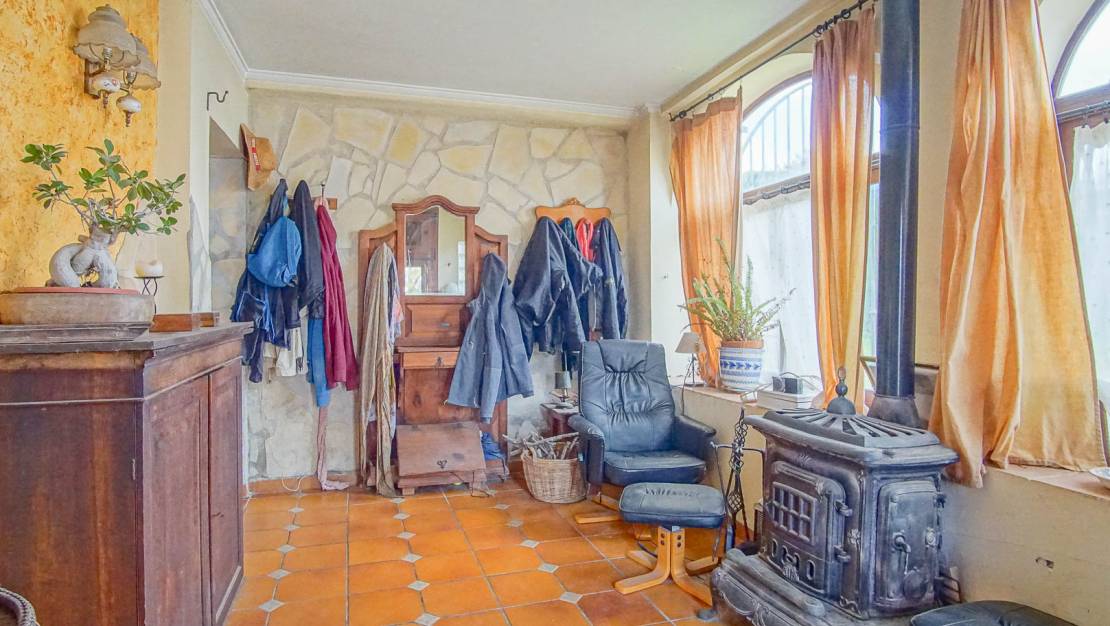 This charming rustic villa in Montgó, Dénia, is set on a large plot and offers spectacular views of the castle, the sea and the natural park. Located less than five minutes from the center, it has a two-story main house with four bedrooms, a fireplace, a fully equipped kitchen and a cozy dining room. There is also an independent guest house of 80 m² with living room, kitchen, two bedrooms and bathroom. Outside there is a solarium, another independent apartment, terraces, a swimming pool and a chicken coop. Equipped with air conditioning, fiberglass, plenty of parking spaces and a cistern. This property combines rural charm with all modern conveniences at hand.