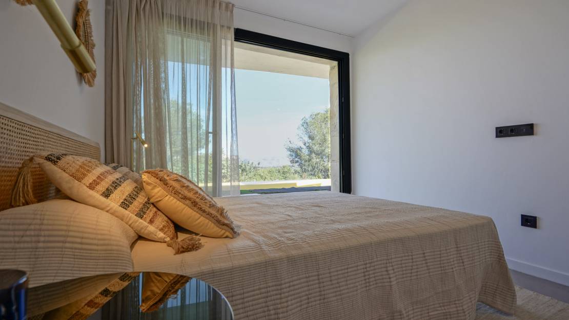 Exclusive New Build Villa with sea views for sale in Puerta Fenicia, Jávea. Discover this beautiful, modern villa, recently completed, situated in an ideal location a short distance from both the charming historic centre of Jávea and the beautiful sandy beach. Enjoy panoramic views over the majestic Montgó, vast orange groves, the iconic Cabo de San Antonio and the azure Mediterranean Sea. Spread over two floors, this villa offers a perfect balance of luxury and functionality. The upper floor houses a generous living-dining room, where large windows not only provide an abundance of natural light, but also offer expansive views of the surroundings. The semi-open kitchen is equipped with top-quality materials, including a spacious cooking island. There is also a practical laundry room with direct access from the kitchen and a guest toilet. The sliding windows in the kitchen provide access to a spacious, partially covered terrace and a beautifully landscaped garden - the ideal place to enjoy the sun and the views. On the ground floor are three elegant bedrooms, each with its own luxurious bathroom. All bedrooms have direct access to the terrace and swimming pool. The villa is equipped with modern amenities such as electric underfloor heating and air conditioning, ensuring optimal comfort all year round. Natural materials such as natural stone and wood have been combined in the construction of this villa for a stylish and timeless result. A unique opportunity to live in one of the most sought-after areas of Jávea, where luxury and comfort go hand in hand with the beauty of nature.