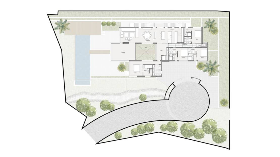 Located in the prestigious urbanisation La Corona, this impressive villa offers the perfect combination of luxury, privacy and an excellent location. Just a short walk from both the marina and the charming centre of Jávea, this is the ideal place for those looking for an exclusive lifestyle in the heart of the Costa Blanca. The villa features 4 generous bedrooms, each with its own en suite bathroom, ensuring ultimate comfort and privacy for residents and guests. The spacious lounge offers an inviting atmosphere with a dining area and an open kitchen with a kitchen island. Adjacent to the kitchen is a practical utility room. There is also a guest toilet which provides extra comfort for visitors. Outside, there is a swimming pool surrounded by a lush garden and a sun terrace, perfect for relaxing and enjoying the sunny Mediterranean days. In addition, the spacious covered terrace offers plenty of opportunities for outdoor living, whatever the season. Covered parking for several cars is also provided. What makes this villa even more attractive is the fact that it is a custom-built project. The building permit has not yet been applied for, which gives you the opportunity to customise the design and finishes entirely to your liking. This villa is the perfect opportunity for those looking for a unique and bespoke home in one of the Costa Blanca's most sought-after locations.