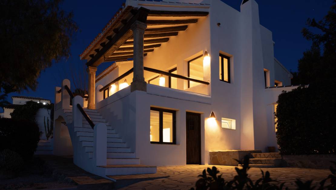 This beautiful, renovated villa is located in the quiet Tosalet urbanisation just one km from the beautiful Jávea coastline. The villa has been recently renovated and refurbished with value placed on retaining traditional Spanish features. The renovation included new flooring, new bathrooms and a new kitchen. Besides the garden and exterior areas have also been given a new touch including a new 4×8 swimming pool installed with a new outdoor shower, an outdoor kitchen with barbecue and a lounge. There is also an outdoor bathroom and parking space for two cars. Via the outside stairs you reach the covered terrace from where you enter the upper floor. Here you enter a cosy living-dining room with a fireplace and an open kitchen with a wooden bar. Adjacent is a dining room with the possibility of converting it into an extra bedroom. On this floor there are also two bedrooms, both with an en suite bathroom, one with access to a spacious terrace. One more floor up is an additional room with an adjoining terrace and stunning views of the valley and Montgó. The ground floor consists of a room with a private entrance that can be used as an office, workshop or bedroom and a guest house consisting of a bedroom with an en suite bathroom. The villa is equipped with air conditioning hot-cold and heating via radiators so you can stay here in comfort all year round! On foot, you can reach several beautiful beaches including Cala Blanca, Cala Sardinera and the sandy beach of Jávea. A beautiful villa in one of the most desired areas of Jávea! On foot, you can reach several beautiful beaches including Cala Blanca, Cala Sardinera and the sandy beach of Jávea. A beautiful villa in one of the most desired areas of Jávea!